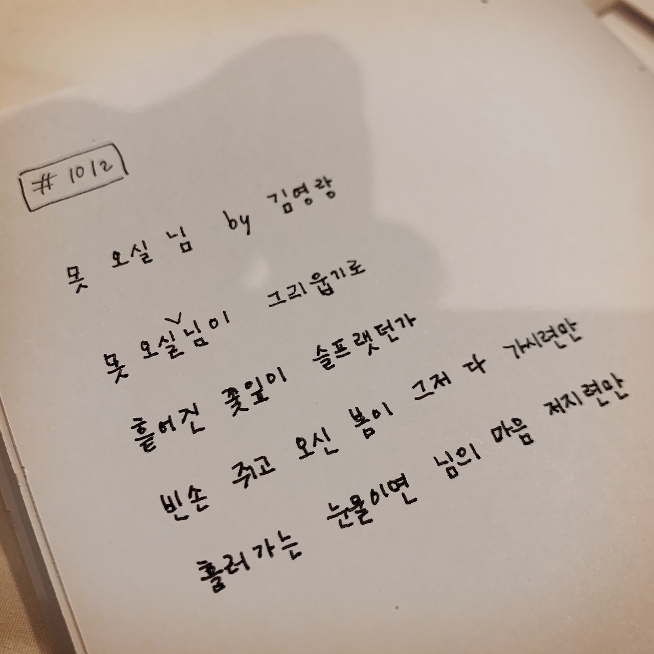 #프로젝트100 #1일1시 #손으로읽는시 #하루한편시필사 #못오실님 #김영랑