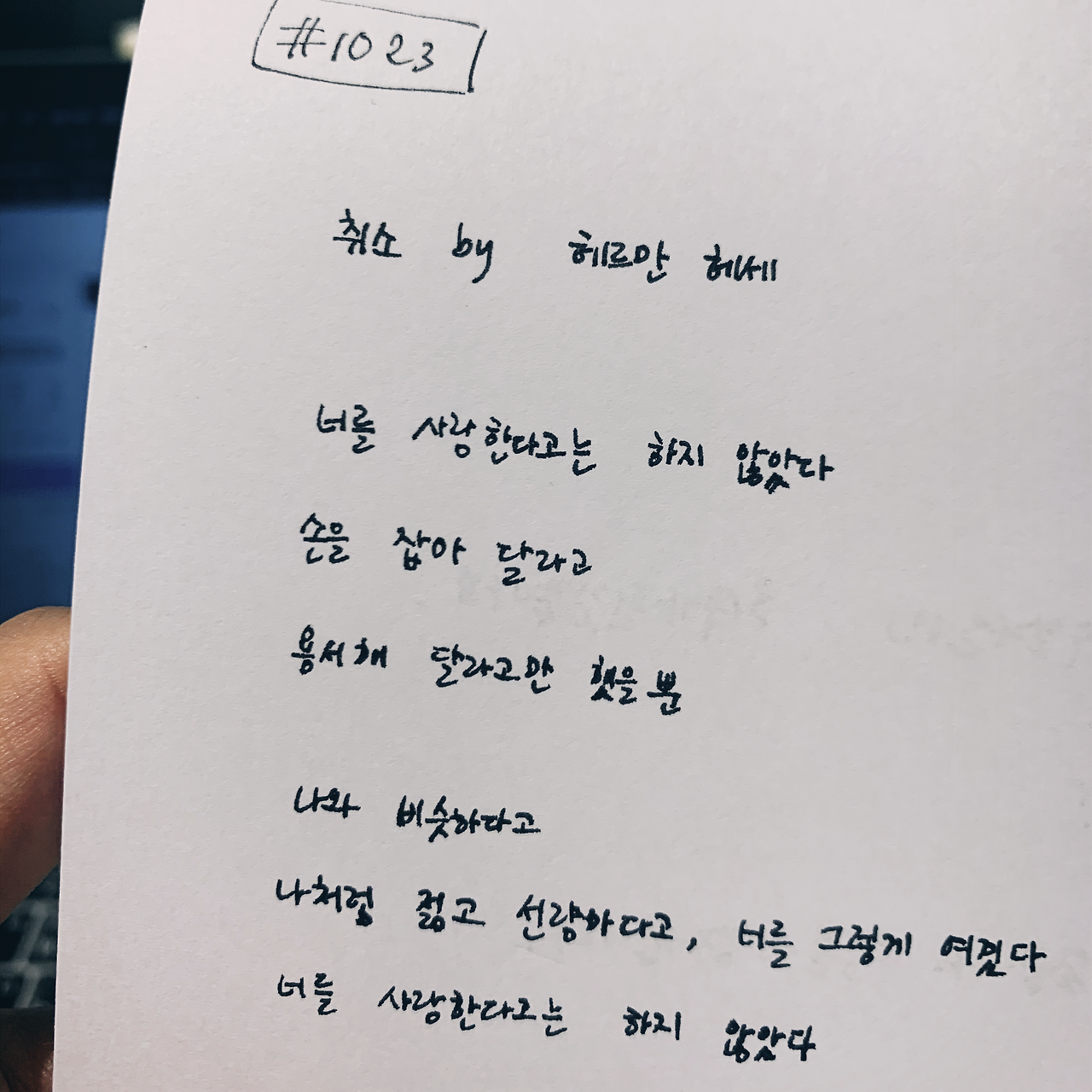 #프로젝트100 #1일1시 #손으로읽는시 #하루한편시필사 #취소 #헤르만헤세