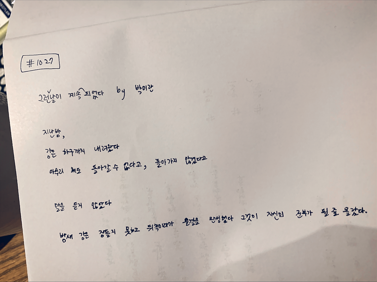 #프로젝트100 #1일1시 #손으로읽는시 #하루한편시필사 #그런날이계속되었다 #박미란