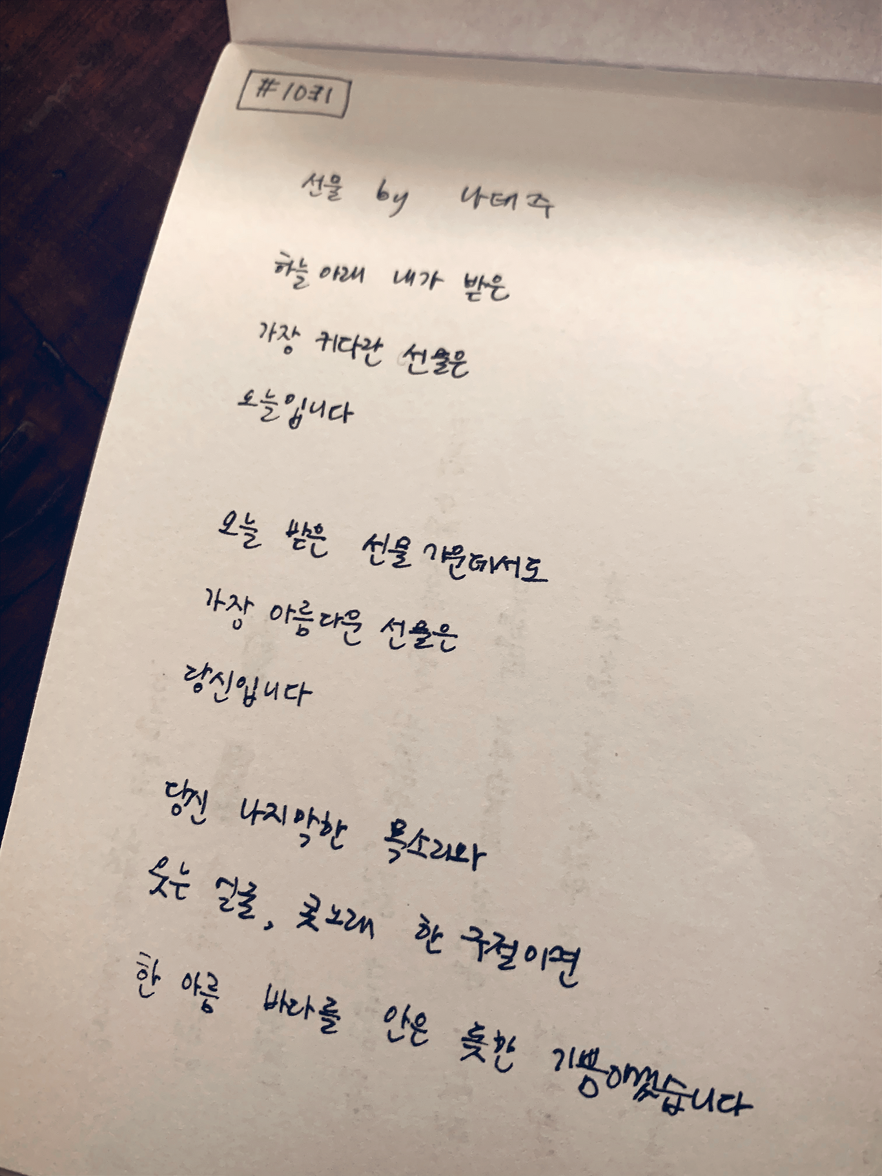 #프로젝트100 #1일1시 #손으로읽는시 #하루한편시필사 #선물 #나태주