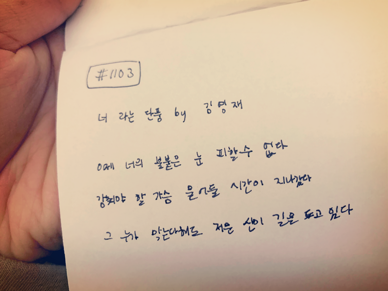 #프로젝트100 #1일1시 #손으로읽는시 #하루한편시필사 #너라는단풍 #김영재