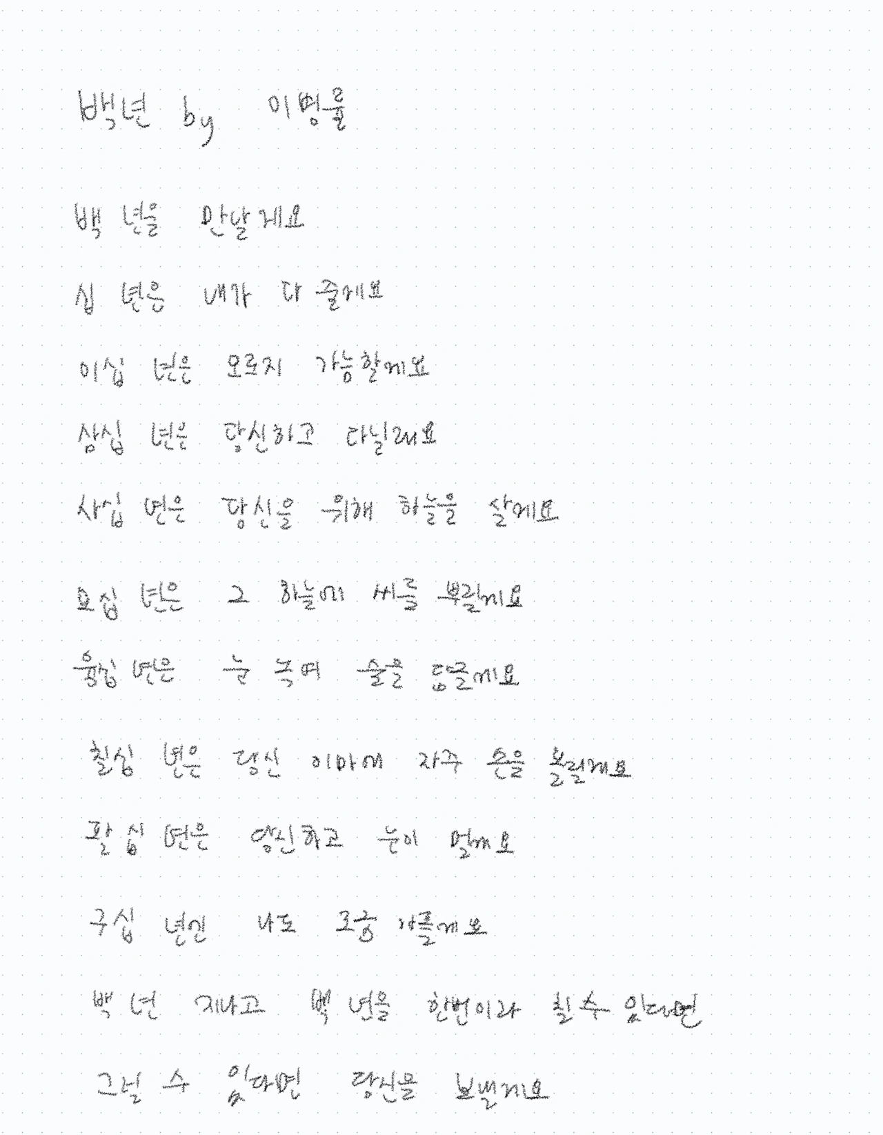 칠십 년은 당신 이마에 자주 손을 올릴게요
