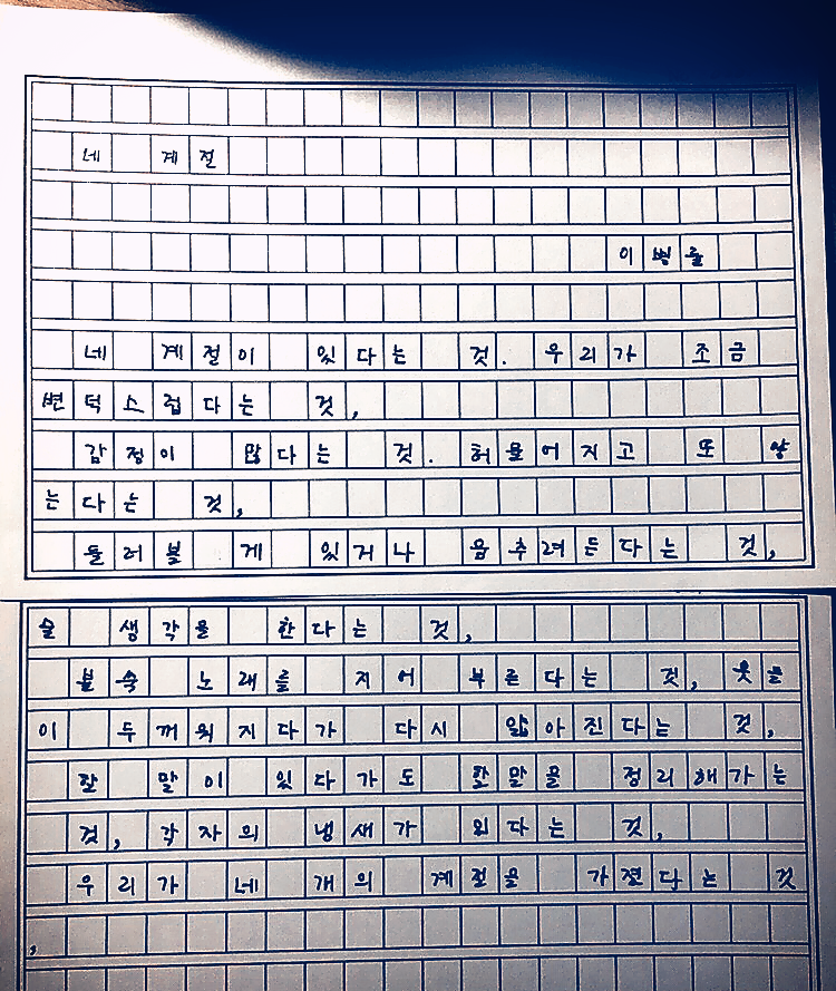 네 계절이 있다는 것. 우리가 조금 변덕스럽다는 것,