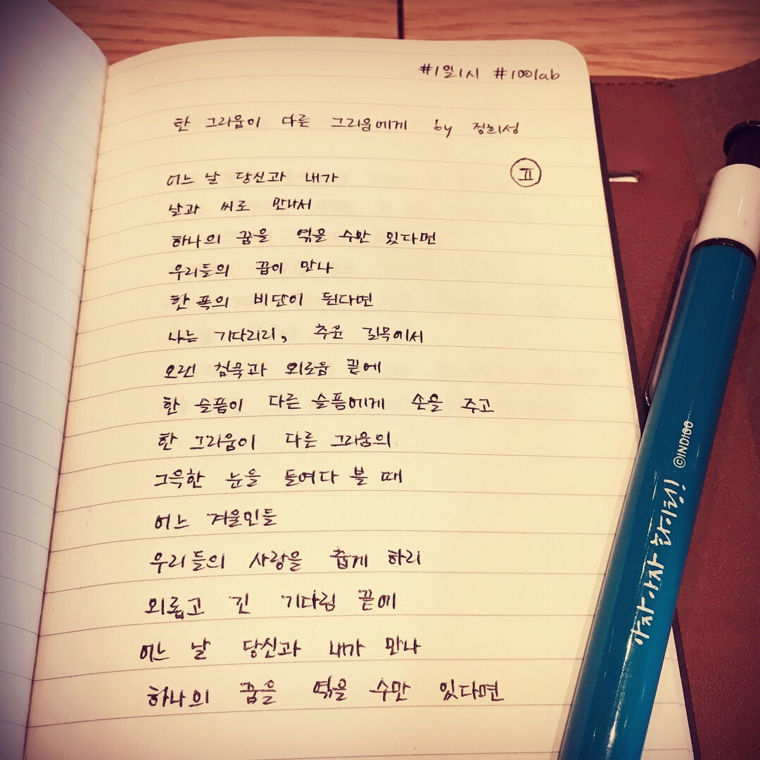 #1일1시 #100lab #정희성 #한그리움이다른그리움에게