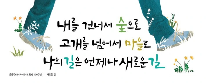 새로운 길 by 윤동주내를 건너서 숲으로고개를 넘어서 마을로어제도 가고 오늘도 갈나의 새로운 길문들레가 피고 까치가 날고아저씨가 지나고 바람이 일고나의 길은 언제나 새로운 길오늘도.....내일도.....내를 건너서 숲으로고개를 넘어서 마을로