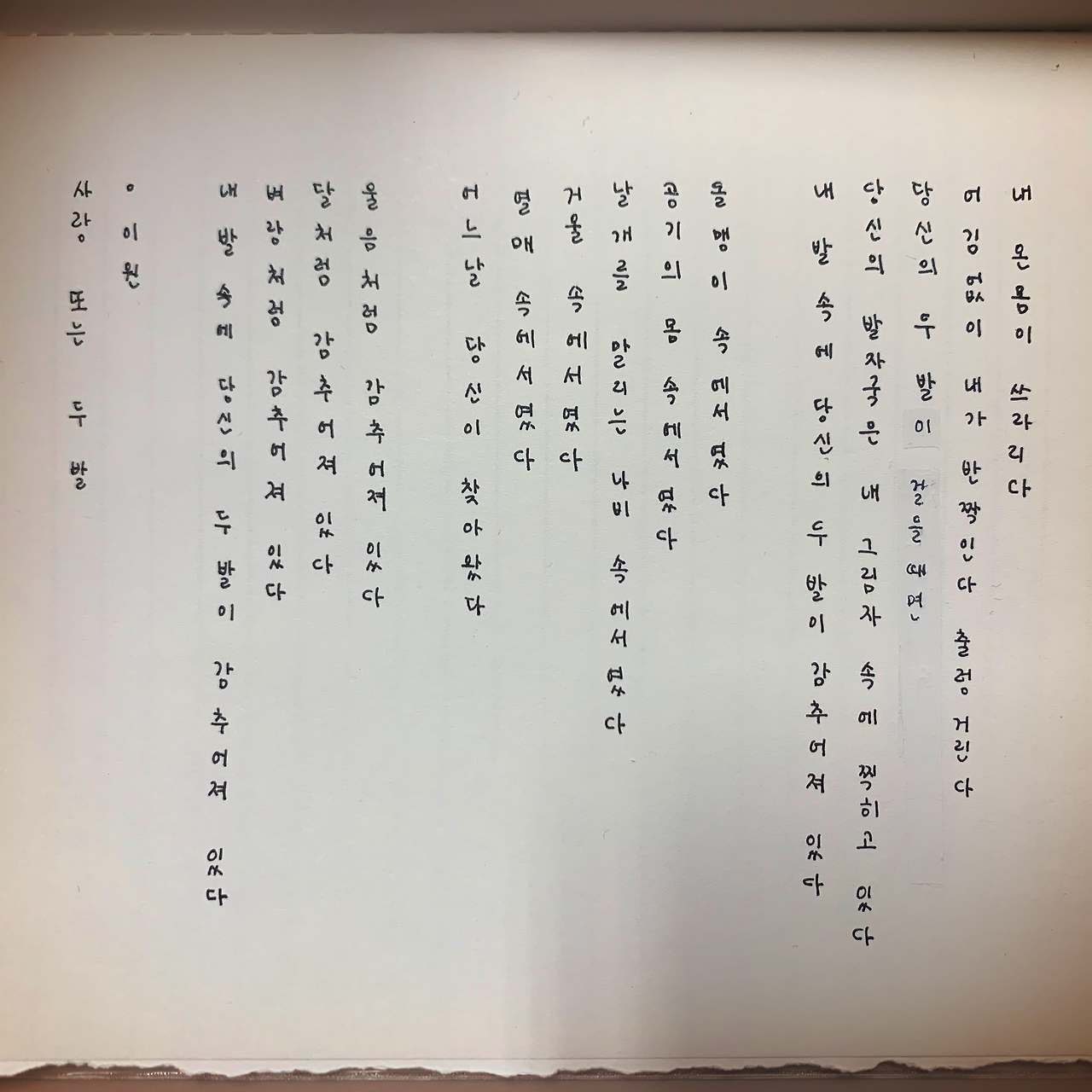 당신의 발자국은 내 그림자 속에 찍히고 있다