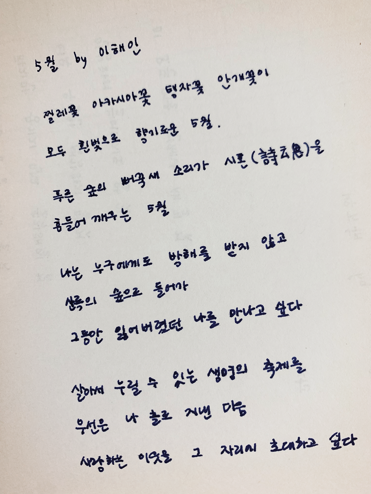 푸른 숲의 뻐꾹새 소리가 시혼(詩魂)을