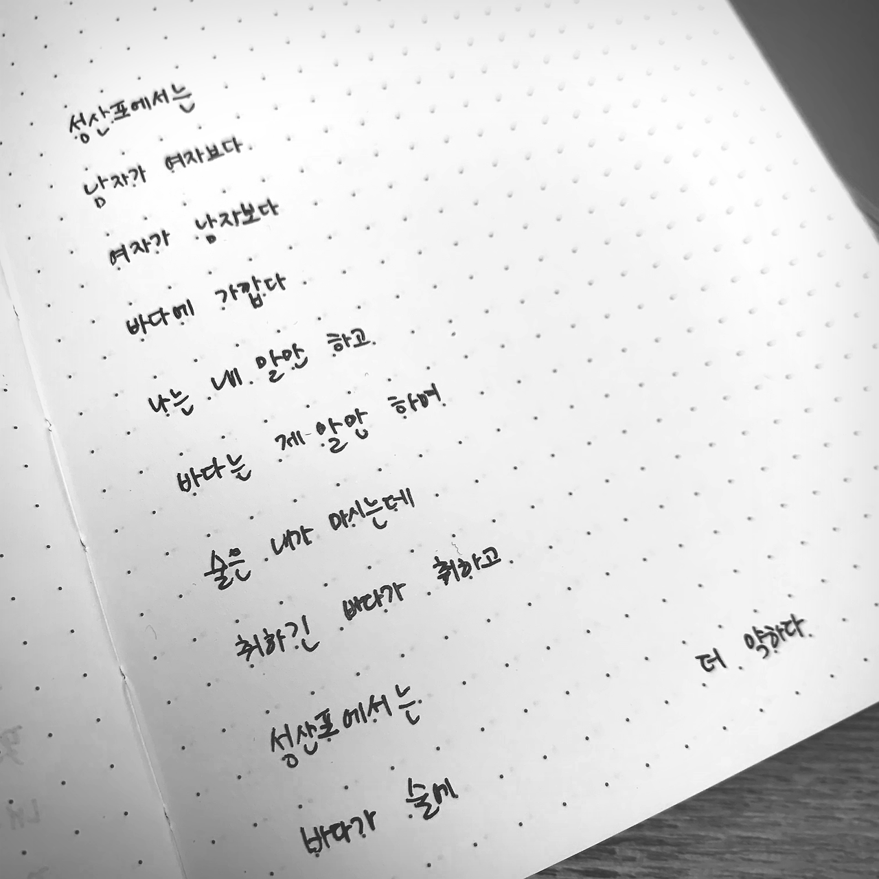 술에 취한 바다 by 이생진성산포에서는남자가 여자보다여자가 남자보다바다에 가깝다나는 내 말만 하고바다는 제 말만 하며술은 내가 마시는데취하긴 바다가 취하고성산포에서는바다가 술에더 약하다