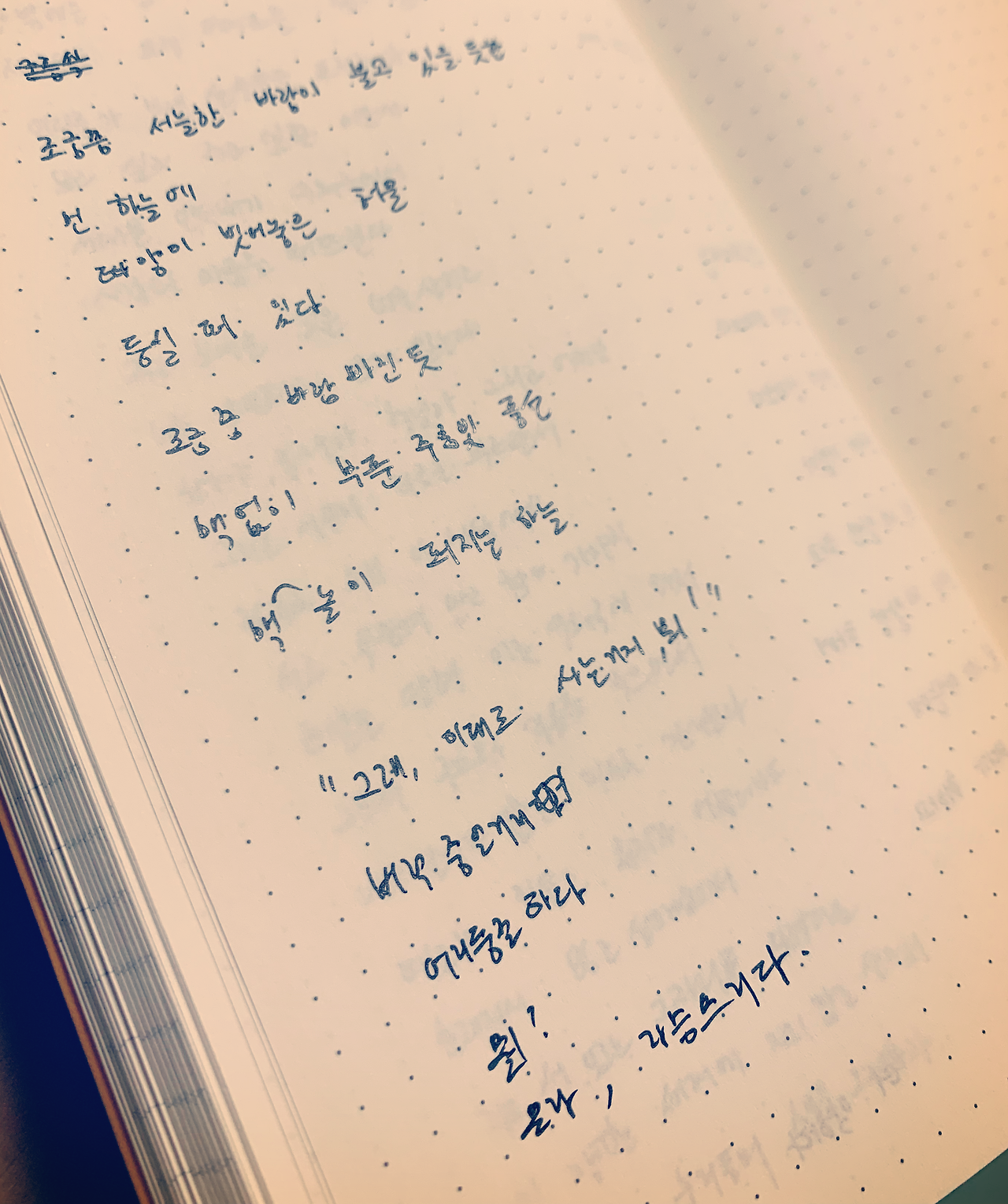 여름 저녁 by 황인숙조금쯤 서늘한 바람이 불고 있을 듯한 먼 하늘에 태양이 벗어놓은 허물 둥실 떠 있다 조금쯤 바람 빠진 듯 맥없이 부푼 주홍빛 풍선 맥놀이 퍼지는 하늘 "그래,이대로 이렇게 사는거지,뭐!" 버럭 중얼거리며 어리둥절하다 뭘? 몰라,가슴 쓰리다