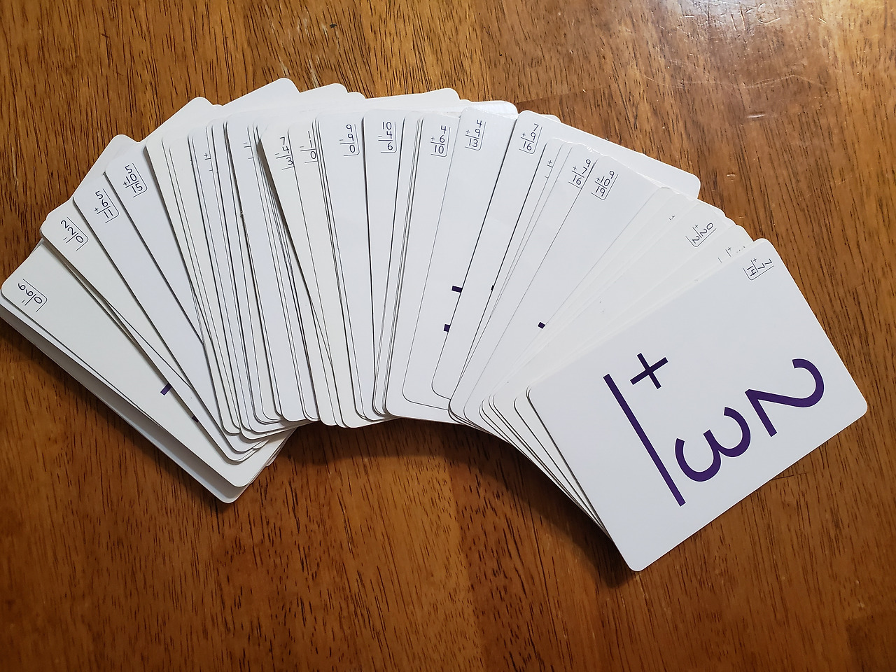 병뚜껑으로 더하기 빼기를 잘하게 되면 월마트에서 $1 주고 산 덧셈 뺄셈 카드로 암산을 공부한다.