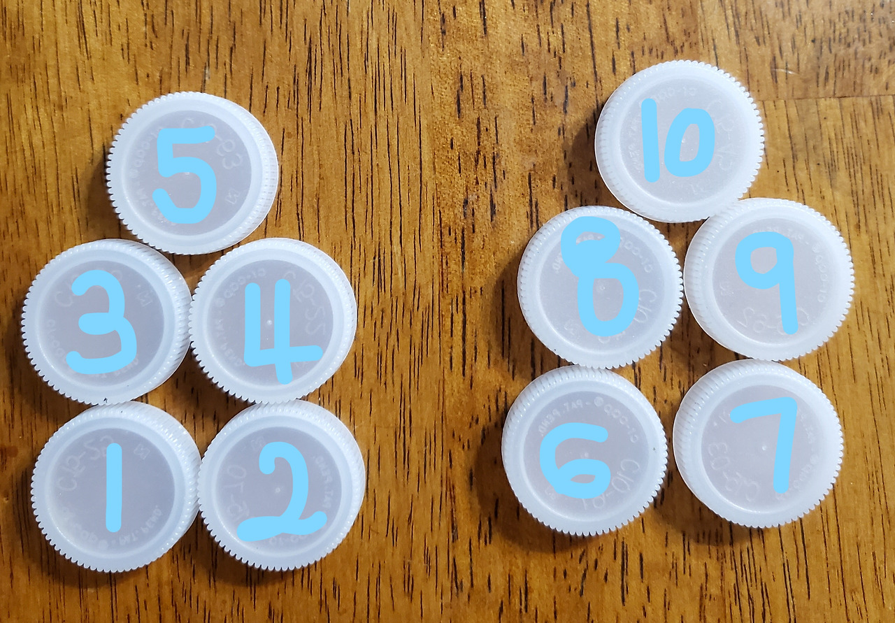 1-10까지 숫자 세기는 항상 왼쪽 5개의 병뚜껑 자리를 아래부터 탑을 쌓는 식으로 진행되었다.