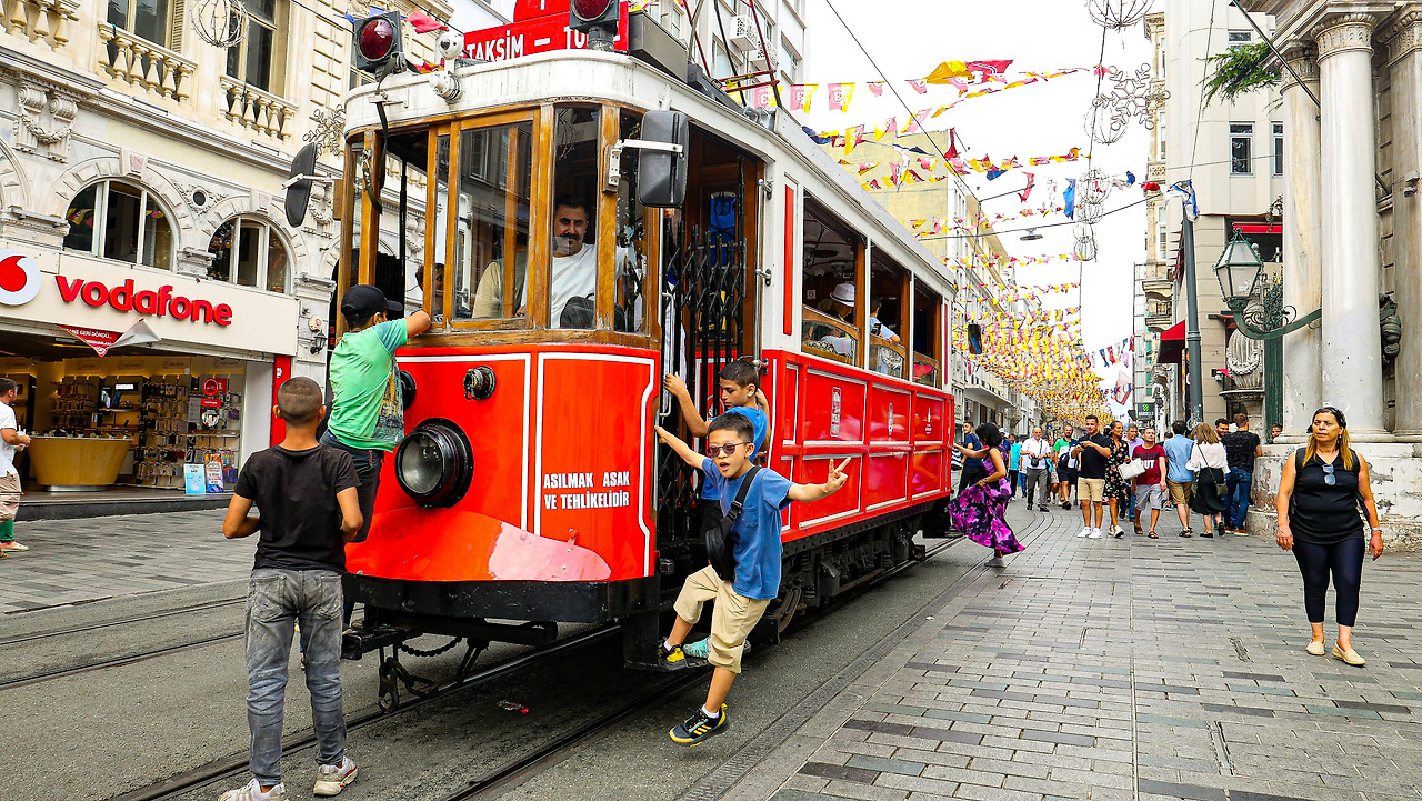 신시가지에서 숙소는 탁심광장 인근으로 잡았다. 짐을 내려놓고 나가본 이스티크랄 거리에는 인파가 가득이다. 식당도 많고 가격은 더 저렴한 편. 신시가지에서보다 마음이 편해졌다. 이스티크랄 거리를 걷다 보면 이따금씩 작고 빨간 트램이 지나가는데 이 인파들 사이에 차가 지나간다는 게 신기했다. 관광상품인지 교통수단인지 모르겠지만, 아이고 어른이고 아무렇게나 매달려서 가는 게 명물이었다. 하하도 신이 나 달려가서 매달린다.