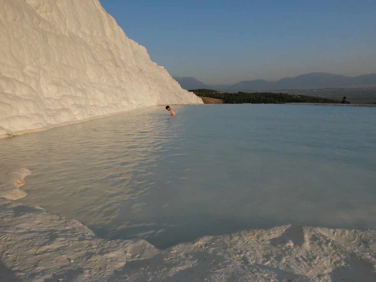고대도시 안에서 옷과 손이 피로 범벅이 되어 나무그늘에 앉아 있자니 헛웃음이 나왔지만 사람들의 친절로 마음은 푸근해졌다. 그렇게 고대도시를 지나 도달한 석회온천에서 하하는 아주 즐거워했다. 아이러브파묵칼레 노래를 부르며 위아래 옷을 다 벗고 팬티만 입고 즐겁게 차례차례 모든 물에 발을 담그며 가장 밑까지 내려왔다. 온천은 하얗기도 했고 옥빛이기도 했고 파랗기도 하다가 아래에 이르렀을 때는 주황빛을 내기 시작했다. 생각해 보니 안탈리아에서 떠나올 때 터미널 도착하자마자 15분 후 출발 버스가 있어 바로 탔기 때문에 점심을 제대로 못 먹었다. 석회온천을 나와 바로 보이는 식당에 들어가 음식을 시켰는데 갑자기 불안해진다. 돌무쉬 막차시간을 미리 안 물어본 것이다. 검색해 보니 아무래도 9시 언저리가 막차일 거 같았다. 하나 더 있다는 글도 있었는 데 있어도 배차간격이 한 시간은 되는 것 같았다. 아무래도 안 되겠어 음식포장을 부탁해서 가지고 정류장으로 서둘러 갔고, 정말로 10분 정도 후 오늘의 마지막 버스가 왔다.