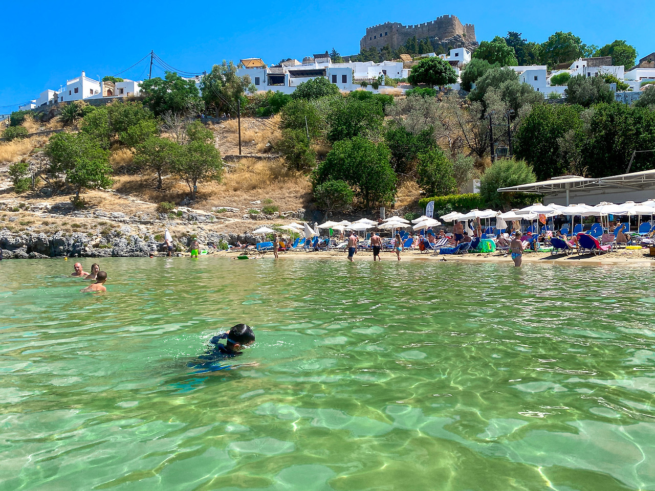 린도스 해수욕장은 작지만 아이들과 놀기에는 백 점짜리다. 물도 맑고 얕은 물이 한참을 이어진다. 하하랑 갔던 해수욕장 중에서는 아이에게 안전하고 깨끗한 기준으로 보자면 우리나라 신안 자은도의 백길해수욕장이 최고로 좋았고, 규모는 작지만 그다음은 여기도 꼽을 만큼 만족스러웠다. 아픈 것도 잊고 오후까지 신나게 놀더니, 하하는 숙소로 오자마자 다시 아프다고 했다. 다음날에는 15시 배로 산토리니로 가야 하고 그전에 아침 일찍 움직여 로도스 구시가지를 봐야 하므로, 오후를 그냥 숙소에만 머물 수가 없어서 아이는 쉬라고 하고 혼자 동네를 돌아보고 사진도 찍었다.