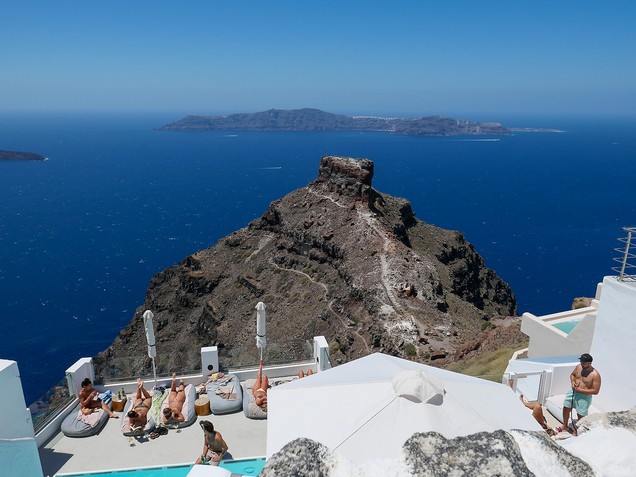 처음 걸으며 그림 같은 숙소들의 프라이빗한 공간에 엎드려 일광욕을 하며 책을 읽거나 맥주를 마시는 여행자들을 보며 부럽게 느껴졌는데, 그 모든 화려한 숙소들을 다 거쳐서 피라에서 이아까지 걷다 보니 그런 생각이 다 사라졌다.