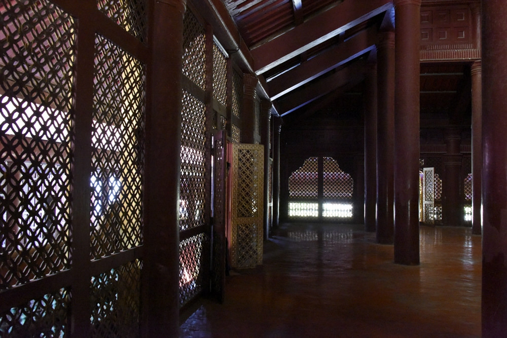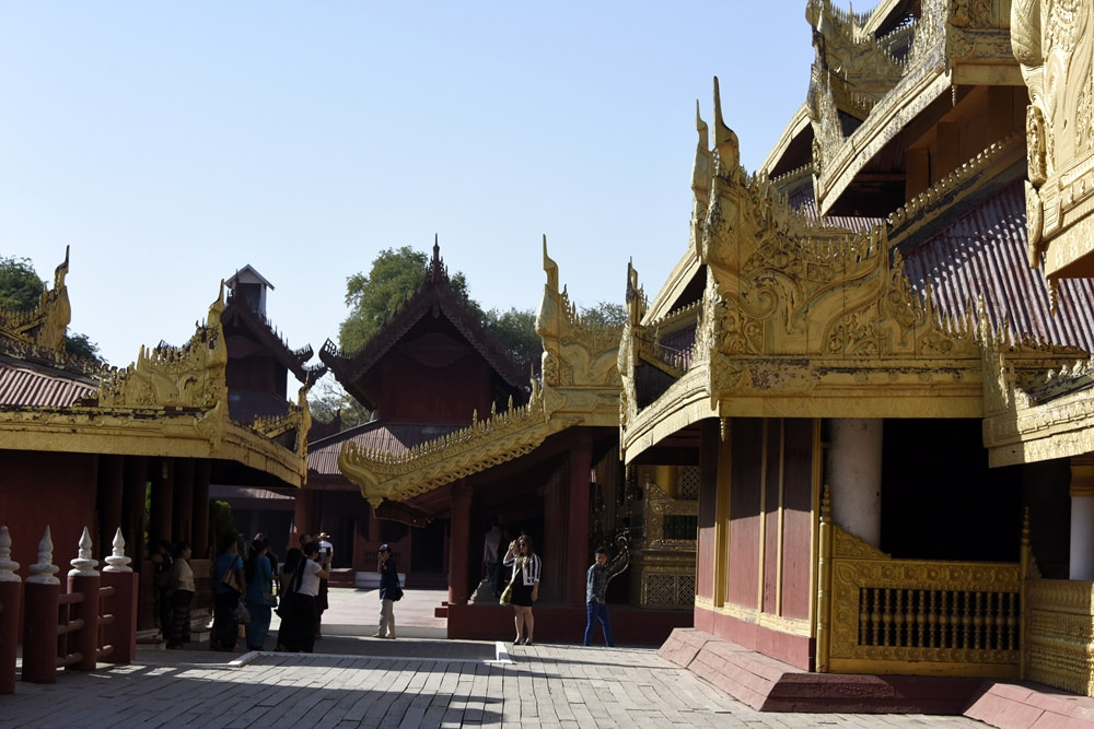 배가 고팠다. 만델레이 궁을 들어가기 전에 입구에 있는 먼지 날리는 가게에 들어갔다. 봉지에 싸인 빵이 있으므로 물과 함께 먹었다. 빵을 한 입 베어 물었다. 입안에 뭔가 걸리는 것이 있었다. 보니, 기다란 머리카락이 빵과 내 입을 연결하고 있었다. 도넛도 기름에 절어 있었다. 급한 대로 배를 채우고 나와 만델레이 궁으로 발길을 옮겼다. 입장료가 1인당 1만 짯이다. 그 입장표는 다른 곳까지도 들어갈 수 있도록 되어 있었다. 그 궁전은 2차 대전 때 소실되어 다시 복원했다고 한다. 거대한 궁전, 화려하게 조각된 가구들을 보니 그 당시 왕이 얼마나 사치를 했을까를 생각하게 되었고 세월이 무심하여, 하늘 같았던 왕이 있었던 궁들이 이제 관광지가 되어 거침없이 드나드는 곳이 되어 버렸다. 망루에 올라 궁전을 한눈에 내려다볼 수 있었다. 한쪽엔 궁전이 있었고 다른 한쪽엔 울창한 숲이 있었다.