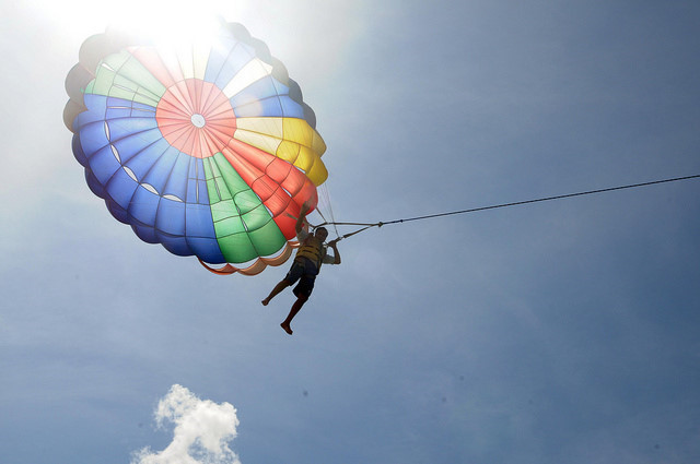 신혼부부는 재미있다며 돌아왔고, 배타고 돌아 나오는 중간에 잠시 내려 패러세일링을 하였다. 보트와 낙하산을 안전줄로 연결하여 배가 움직이면 사람을 매단 낙하산이 바람을 타고 하늘을 난다. 보트는 쏜살같이 달려 곧바로 제자리로 돌아온다. 5분이라고 했지만 2-3분 정도밖엔 안 되는것 같다.