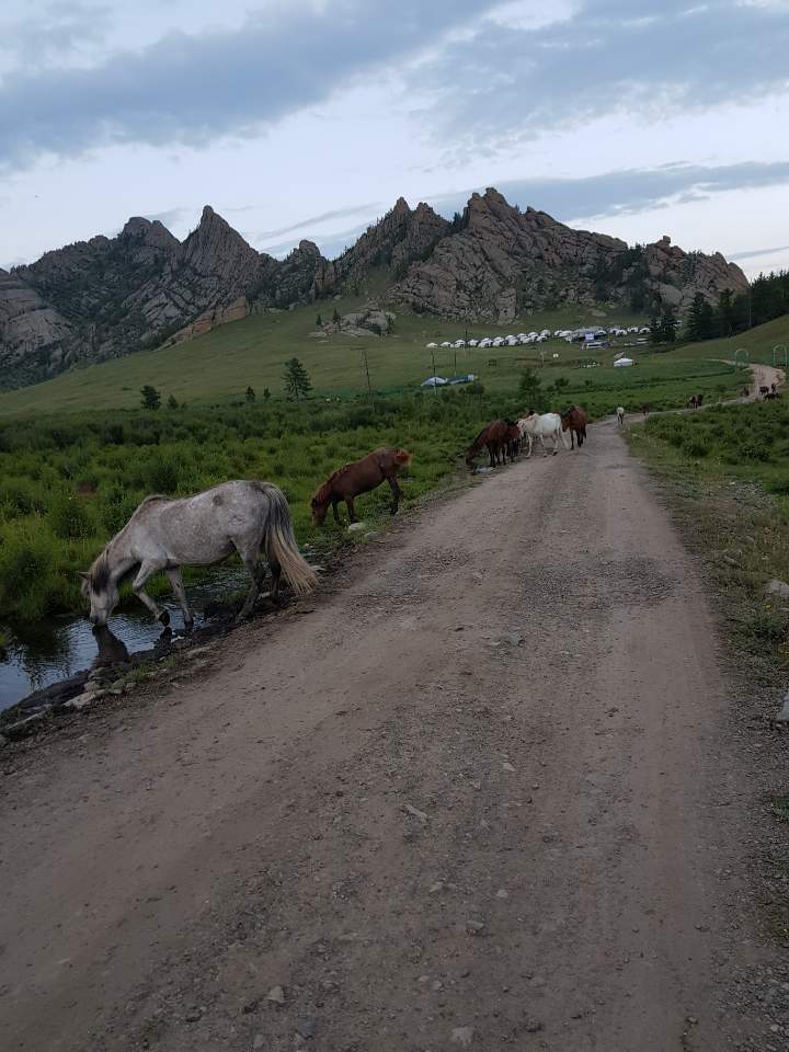 다음날 저녁, 부러운 한 쌍은 산책을 즐겼다. 어느 순간에 보면 언덕을 오르고, 산을 오르고, 쉬지 않고 손잡고 걸어 다녔다. 우리도 찰떡 부부를 따라 야산을 올랐다. 하늘에서 거대하고 기괴한 암석들을 푸르른 초지위에 툭툭 던져 놓은 듯 신비스럽고 기묘하여 내가 마치 타임머신 타고 다른 행성에 온 느낌이다. 산 아래로 또 다른 게르촌이 보이고 가끔은 지나가는 소떼가 보이기도 한다. 붉은 노을과 집으로 돌아가는 소떼들과 아름다운 목초지를 보고 있으니 내가 그림이라도 잘 그리거나 시라도 쓸 줄 알면 그 아름다움을 어떻게 라도 표현할 수 있을 텐데 하는 안타까움이 든다. 알콩달콩 부부 덕에 잊지 못할 추억을 하나 만들었다. 밤에는 비가 내렸다. 몽골의 별은 그렇게 끝나 버렸다.