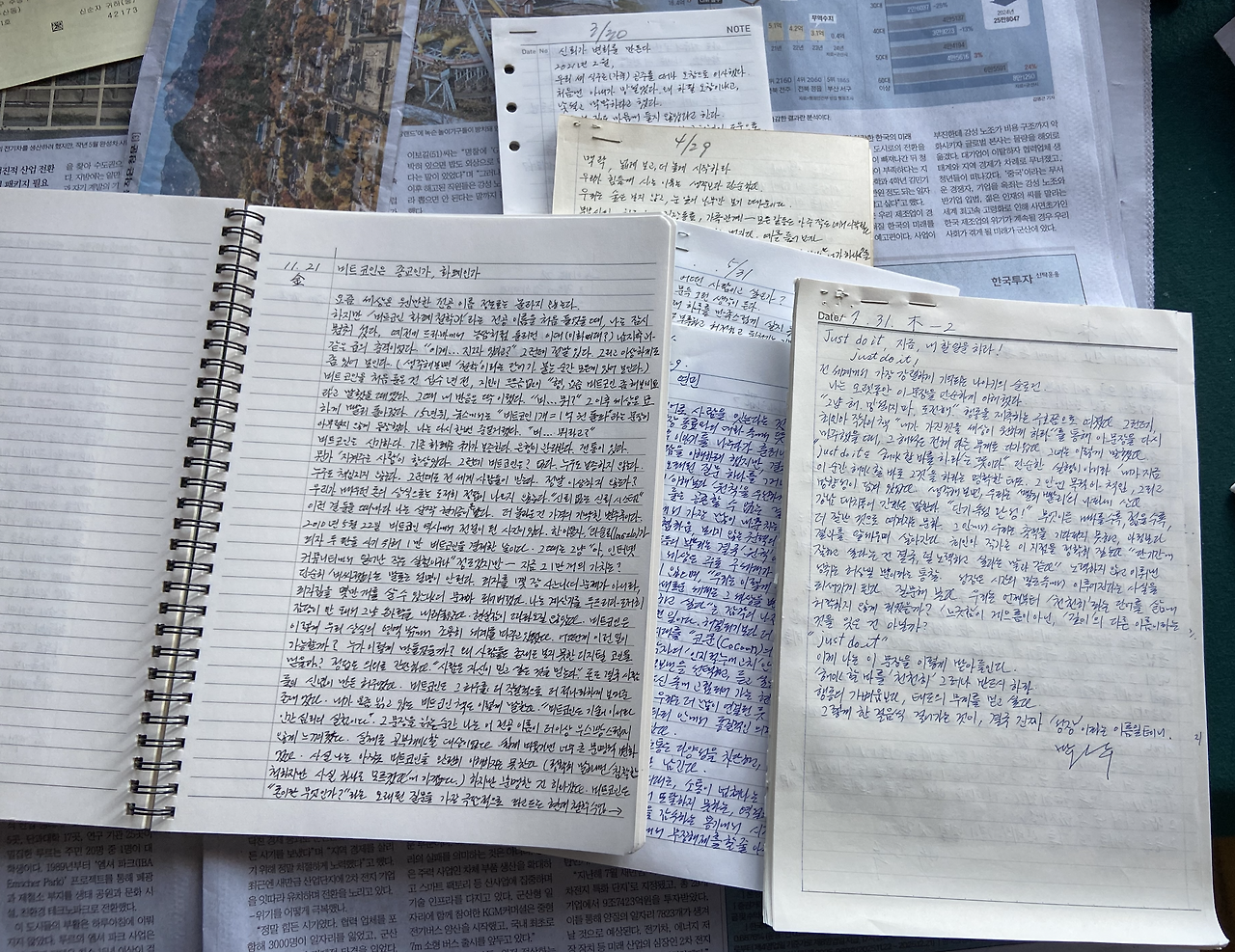 책상 위에는 크기 다른 공책이 여러 권 놓여 있었다.