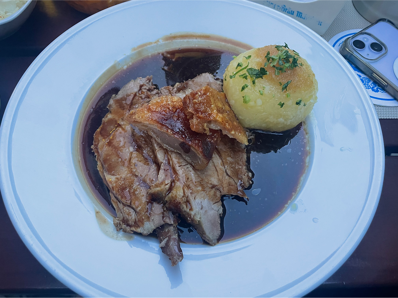 뮌헨(Munich)이라는 도시가 역사에 등장한 것은 1158년의 일이다. 뮌헨은 수도승의 도시라는 의미를 가지고 있기에, 뮌헨의 도시 깃발에도 수도승의 그림이 그려져 있다. 마리아 광장에 도착했을 때는 저녁 7시가 넘었지만, 봄에서 여름으로 가는 길목이라 아직 해가 지지 않았다. 여행 기간 동안 뭔가 제대로 된 저녁을 먹은 기억이 없어서 이번에 와이프가 알아둔 괜찮은 식당으로 갔다. Augustiner Klosterwirt 식당은 평이 4.5이면서 리뷰가 1만 건이 넘길래 믿고 갔다. 베를린과 다르게 뮌헨은 독일어로 인사를 하고, 손님을 받았다. 우리는 몇 개 배운 독일어와 영어를 섞어서 주문을 했는데, 음식이 정말 맛있었다. 예전 오스트리아에서 먹던 슈니첼과는 다르게, 고기가 매우 부드럽고 육즙이 풍성했다. 이 식당도 역사가 꽤 오래돼 보였다.
