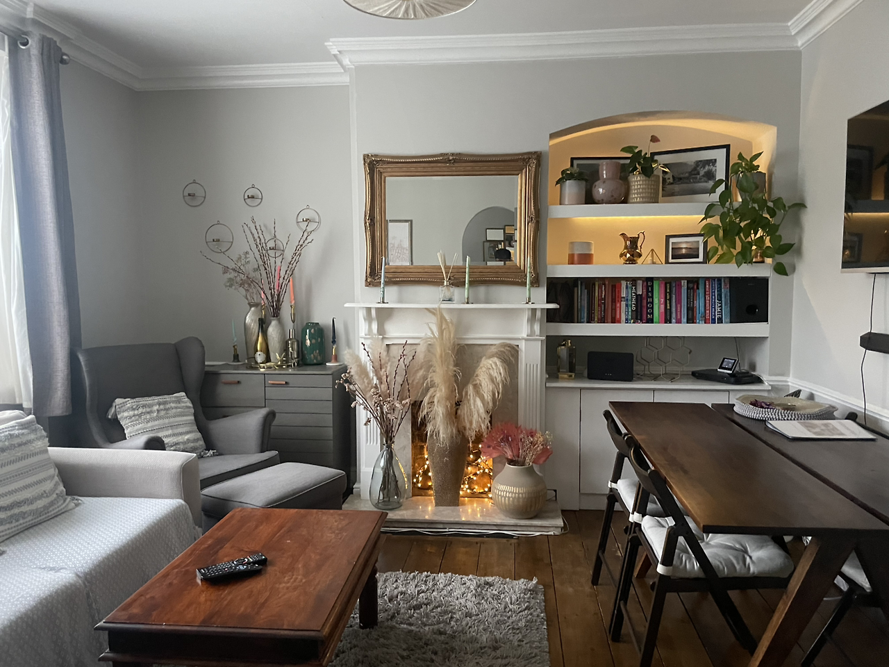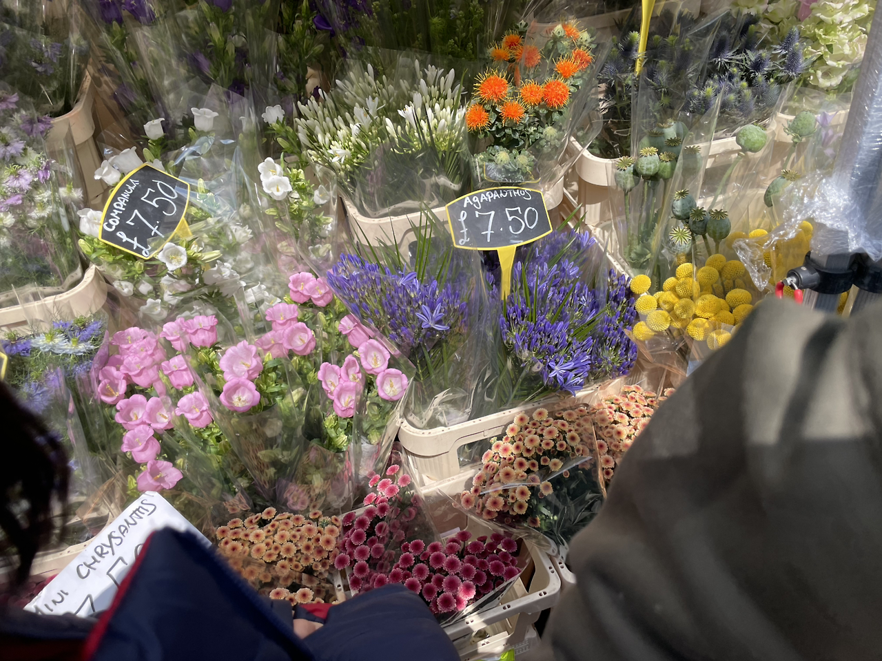 9일간 머문 숙소. 동네에서 사 온 와인. 콜럼비아 로드 플라워 마켓에서 산 꽃. 일주일이 다되어 가는데 시들지 않는다고 와이프가 신기해했다.
