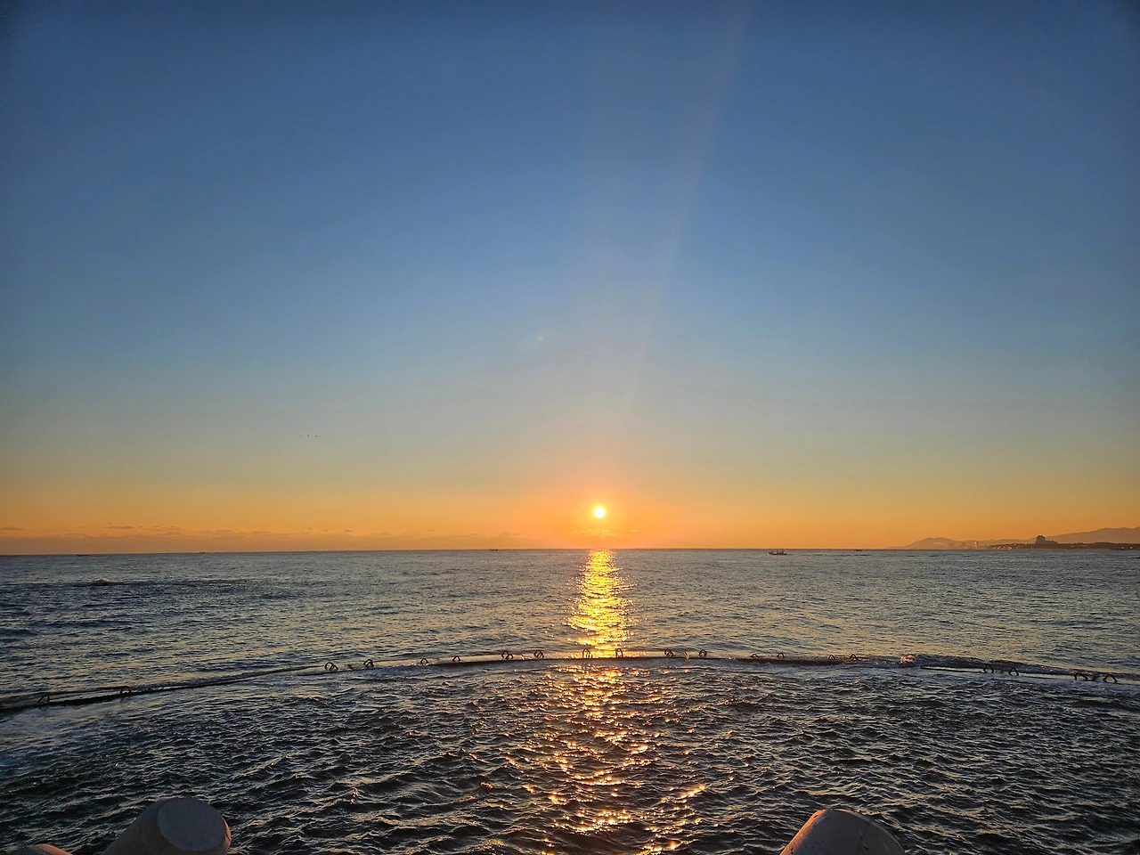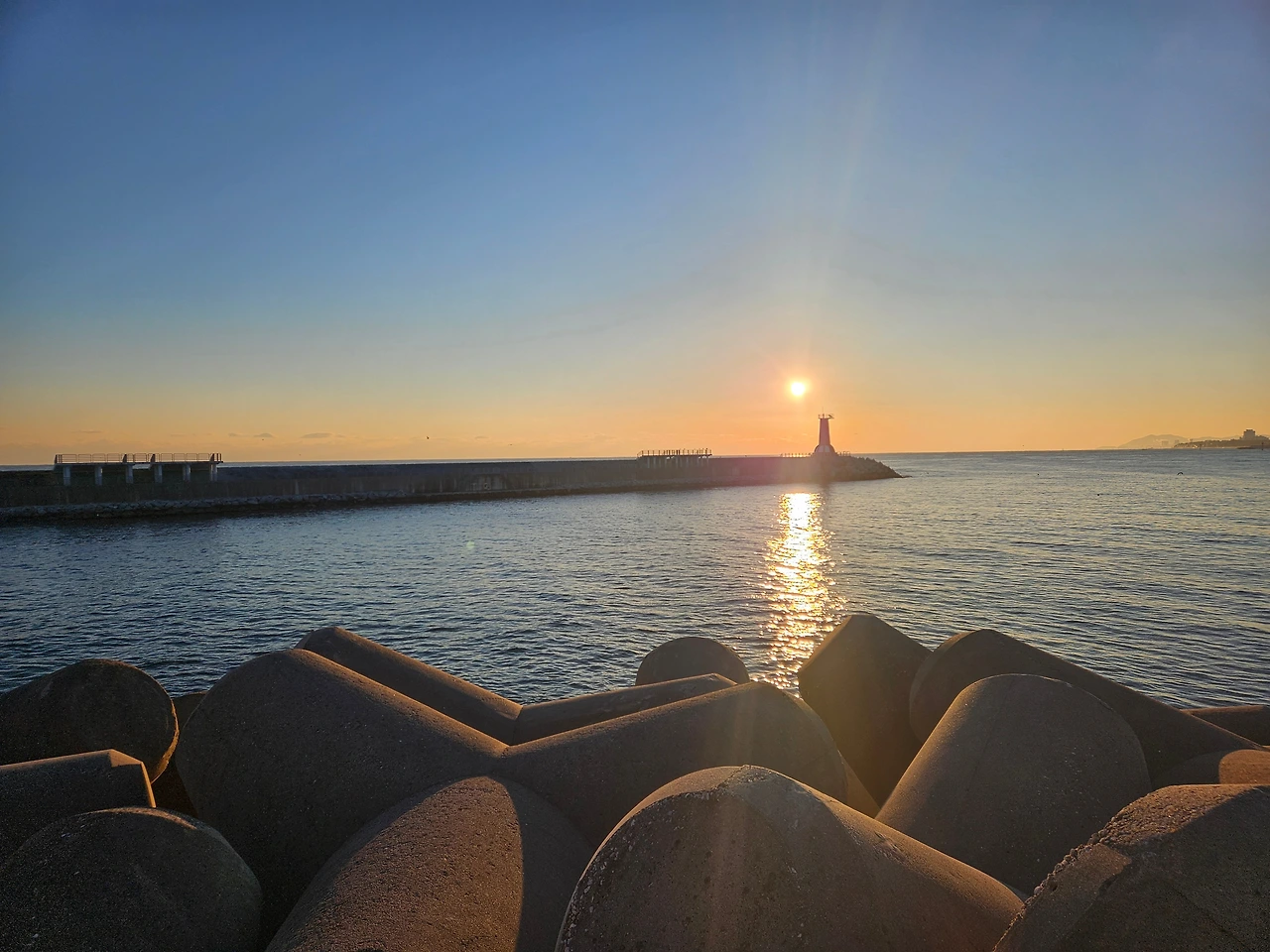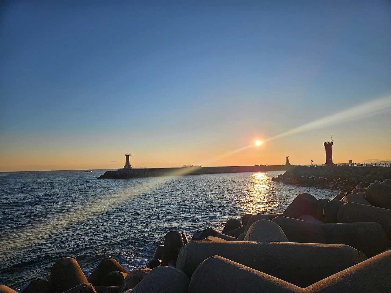 다음 날 오전에 조금 여유가 있었지만 전날 수도권 중심으로 눈도 내려, 추위 앞에서 잠시 망설이기도 했다. 어제 본 예쁜 달이 떠올라 고민 끝에 해와 바다를 보러 일찍 움직였다. 7시에 조식을 먹고, 해가 뜨기 시작할 때 주문진 방파제를 산책하고 오기로 했다.