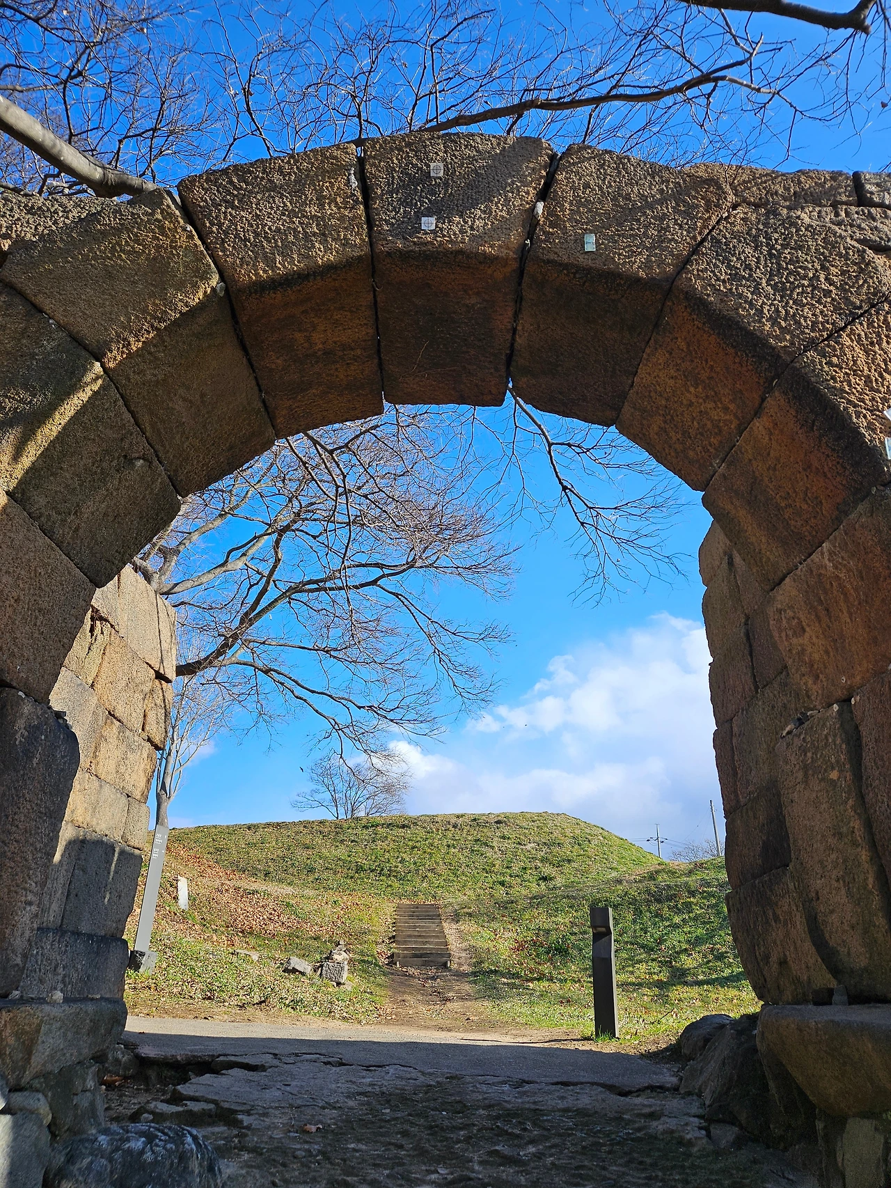 우리나라 다른 수영성 유적과 달리 충청 수영성은 지형과 경관이 잘 보존되어 있다고 한다. 정약용, 이항복 선생님이 조선 최고의 정자로 묘사한 수영성의 정자 ‘영보정’에 오르는 길이 하나같이 예뻤다. 수원 화성 성곽길을 걷는 듯하면서도, 바다가 펼쳐져 있었다. 파란 하늘이 액자처럼 담긴 무지개 모양의 서문을 지나니 하늘보다 더 파란 오천항이 보였다.