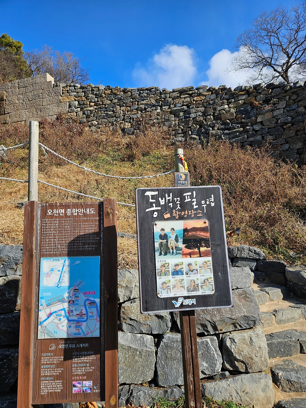 보령에 도착해서 점심을 일찍 먹고 나니 낮 열두 시였고, 충청 수영성을 둘러보았다. 충청 수영성 어귀에 드라마 동백꽃 필 무렵 촬영 장소와 수영성에 대한 안내판이 있었다. 동백꽃 필 무렵은 56회 백상예술대상 TV 대상도 받았던 작품이라 주변에 안 본 사람이 별로 없었던 것 같다. 나도 참 재밌게 봐서 안내판을 읽고 어떤 장면이었는지 잠시 떠올려 봤다. 동백이가 걱정되고 신경이 쓰이는 용식이가 자신의 솔직한 마음을 표현하는 장면과 수영성의 노을 지는 배경이 참 잘 어울렸다.