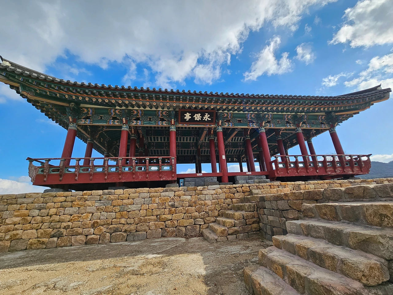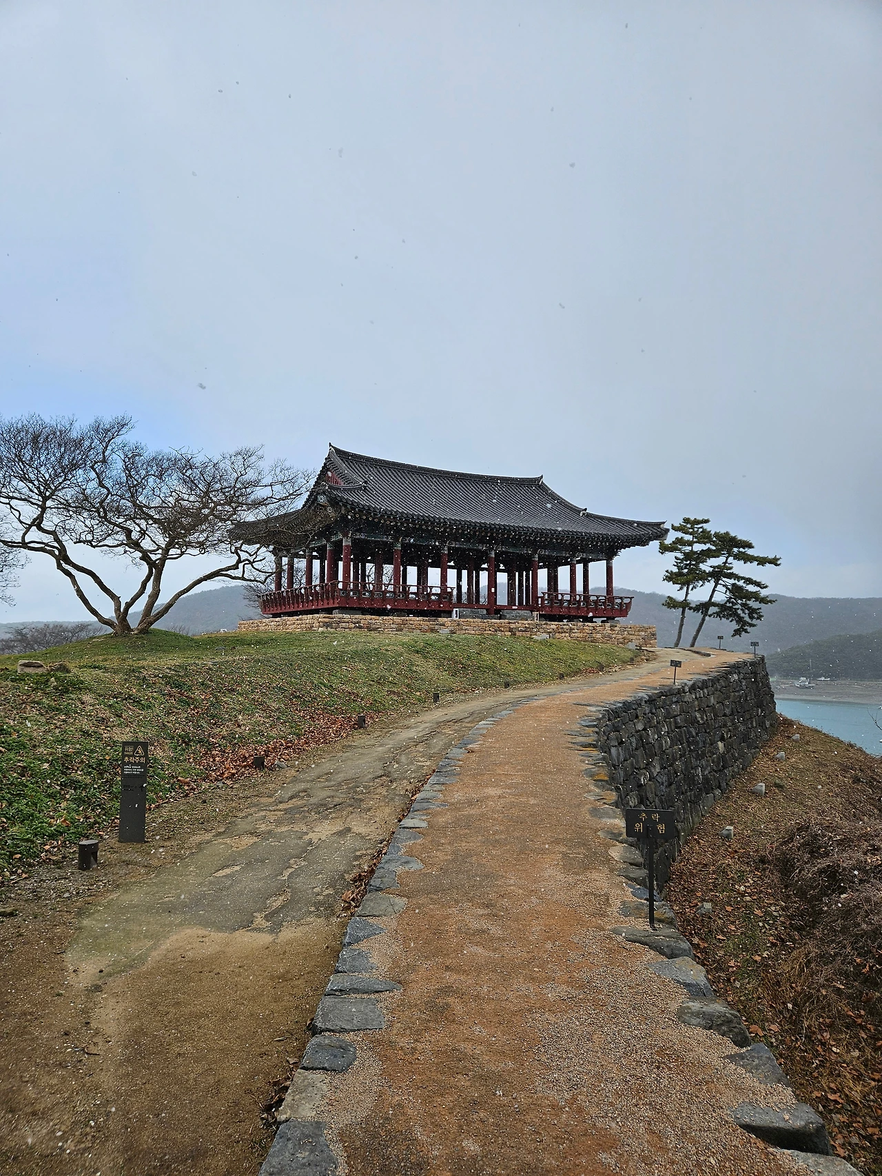 영보정(永保亭)은 이름처럼 임진왜란, 병자호란 등 위기에서 나라를 지키고, 아름다운 경관도 지켜냈다. 영보정을 한 바퀴 돌아보니 수영성에 도착한 지 10분밖에 안 되었는데 파란 하늘이 어두워지면서 갑자기 눈이 내렸다.