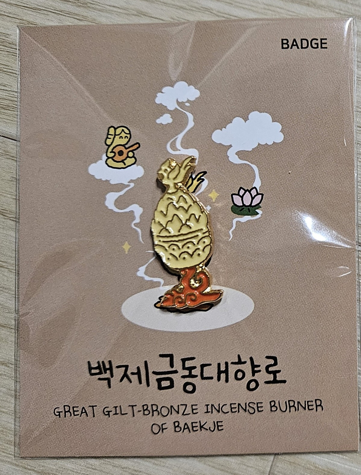 백제 금동대향로관에서 내려오니 1시쯤이었는데 1층에 사람들이 모여 있었다. 얼마 뒤 불이 꺼지고 미디어파사드, 금동대향로의 디지털 실감 영상이 부여 석조를 중심으로 펼쳐졌다. 약 10분의 영상은 백제 금동대향로를 봤던 감동을 되살아나게 했다. 하루에 4회만 상영한다는데 일부러 시간을 맞춘 듯 볼 수 있어서 또 한 번 감사했다. 기념품을 잘 사지 않는 편인데 금동대향로 배지를 사서 가방에 달고 선물용으로도 몇 개 샀다. 집에 돌아와서도 홀린 듯 백제 금동대향로 사진을 한참 들여다보았다.