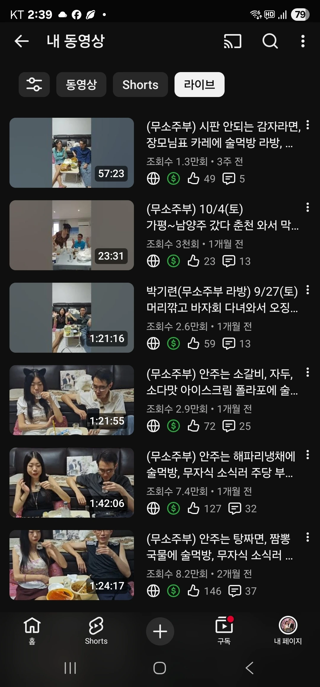 이렇게 유튜브 영상과 숏츠, 라이브방송을 제작해서 먼 미래의 노후준비를 하기 위해 노력하고 있다.