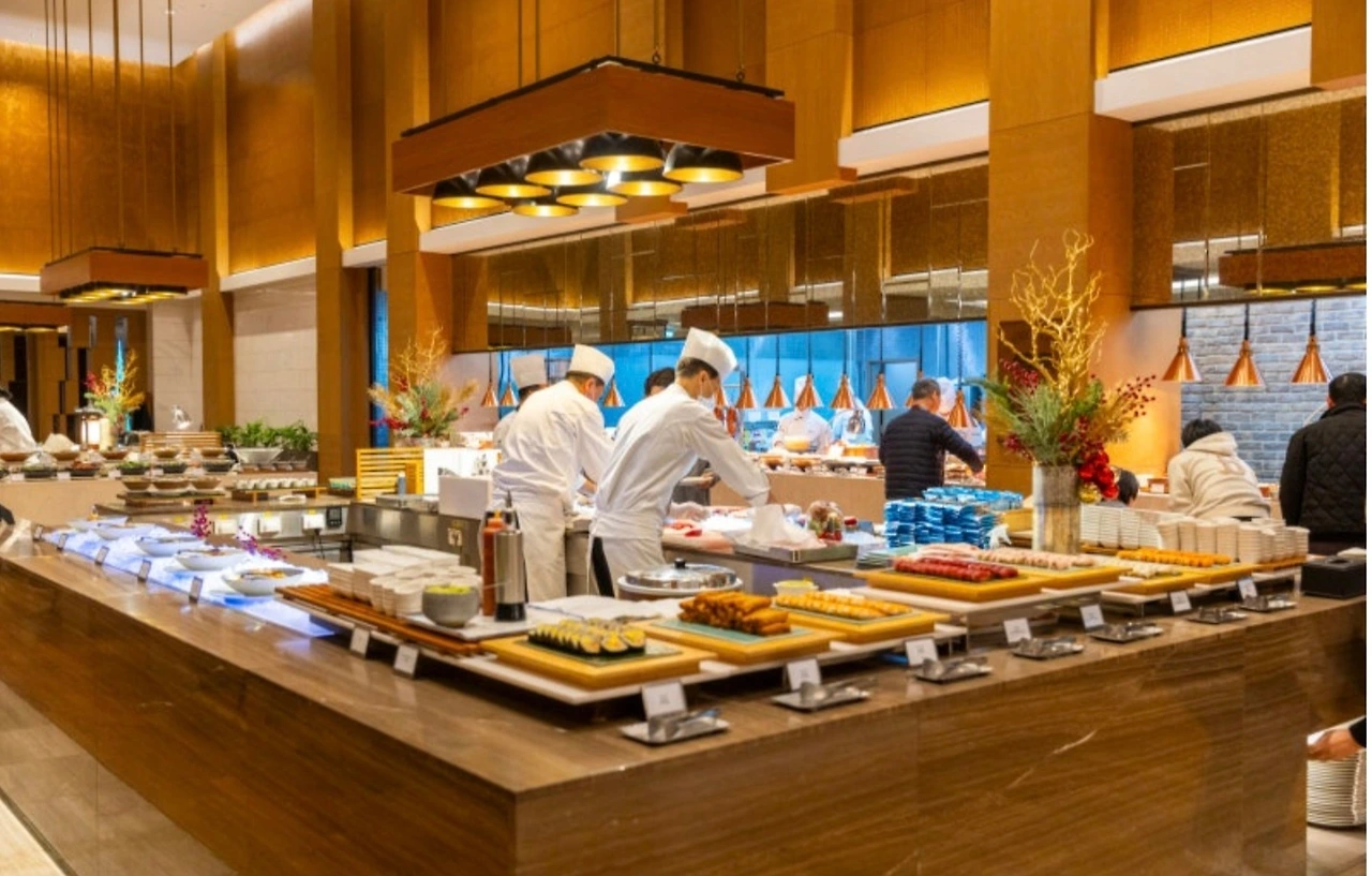뷔페 많은 음식을 앞에 두고도