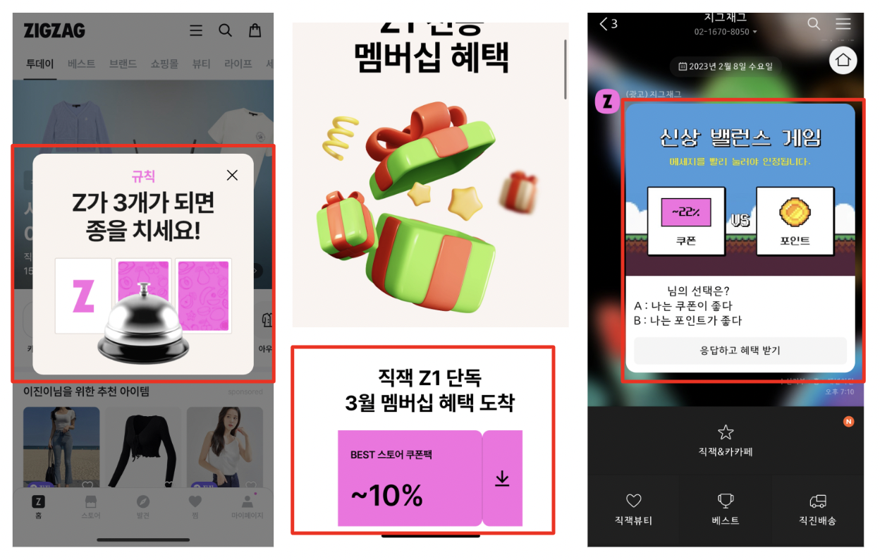이러한 게이미피케이션 메시지를 콘텐츠로 잘 풀어내는 곳 중 하나가 바로 지그재그다.