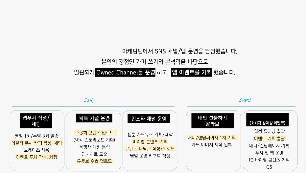 이런 경험을 바탕으로 앞으로의 마케팅 커리어를 고민하며 생각을 정리해 봤다.