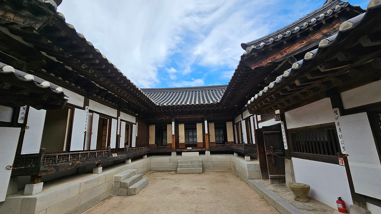 대문에 들어서자 투호놀이를 즐길 수 있는 너른 마당과 대궐 같은 한옥 다섯 채가 줄지어 나타났다.