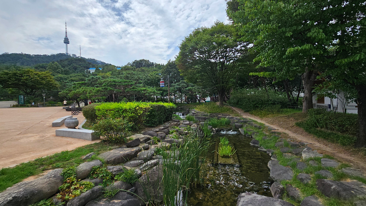 그 옆에는 남산 산기슭을 돌아 내려오는 개울물이 흐르고, 개울 가운데에는 수초가 무성했다. 도심 한복판에서 세월을 살짝 비켜간 한적한 여유가 느껴졌다.