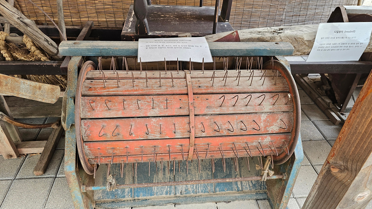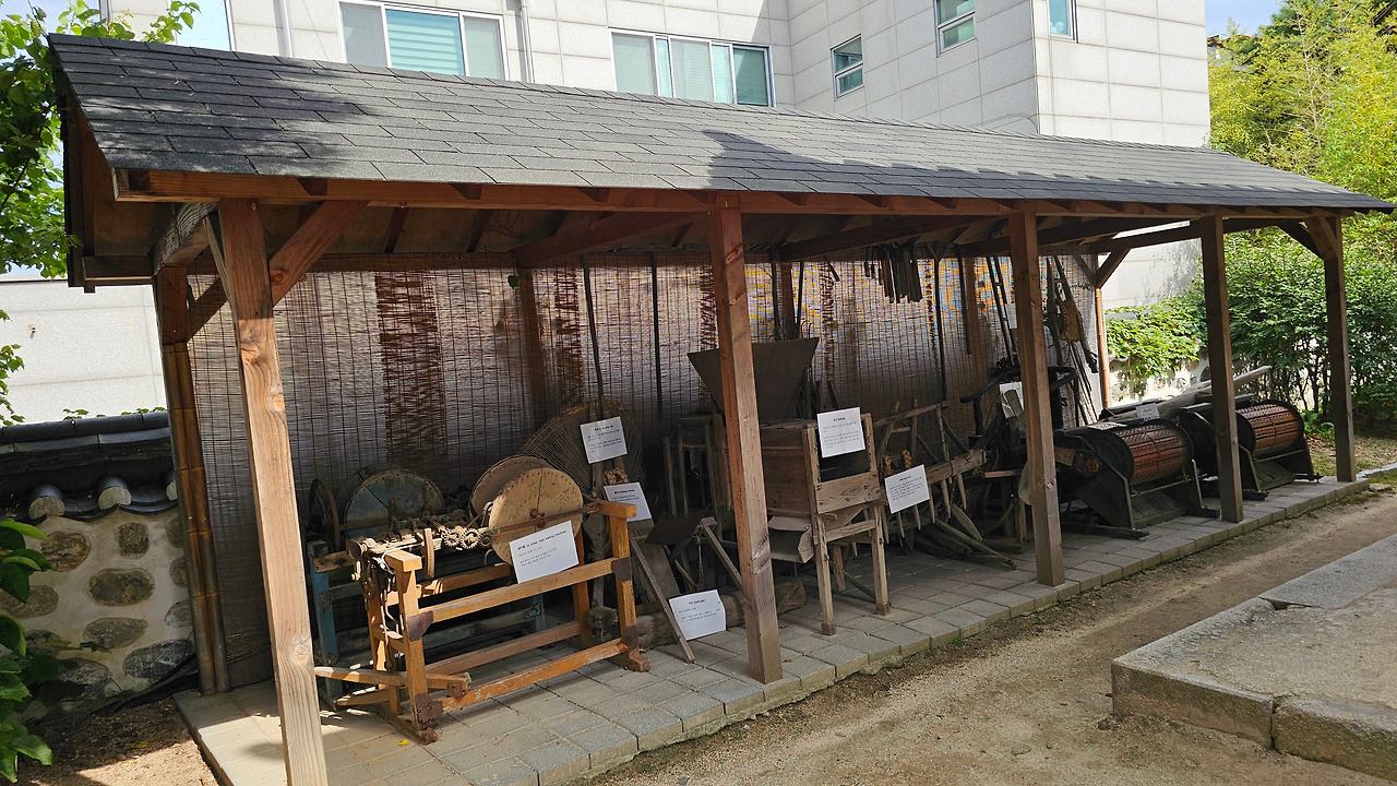 사랑채와 안채를 먼저 보고 뒤쪽에 위치한 사당까지 둘러보고 나오는데도 한참이 걸렸다. 사당 옆 헛간에는 조상들이 농작물을 일구는 데 사용한 농기구가 옛 모습 그대로 전시되어 있었다. 풍구와 써래, 지게, 홀태, 작두, 디딜방아 등 어렸을 때 직접 사용해 보기도 했고, 조상들이 사용했던 물건들이라 더없이 반가웠다.