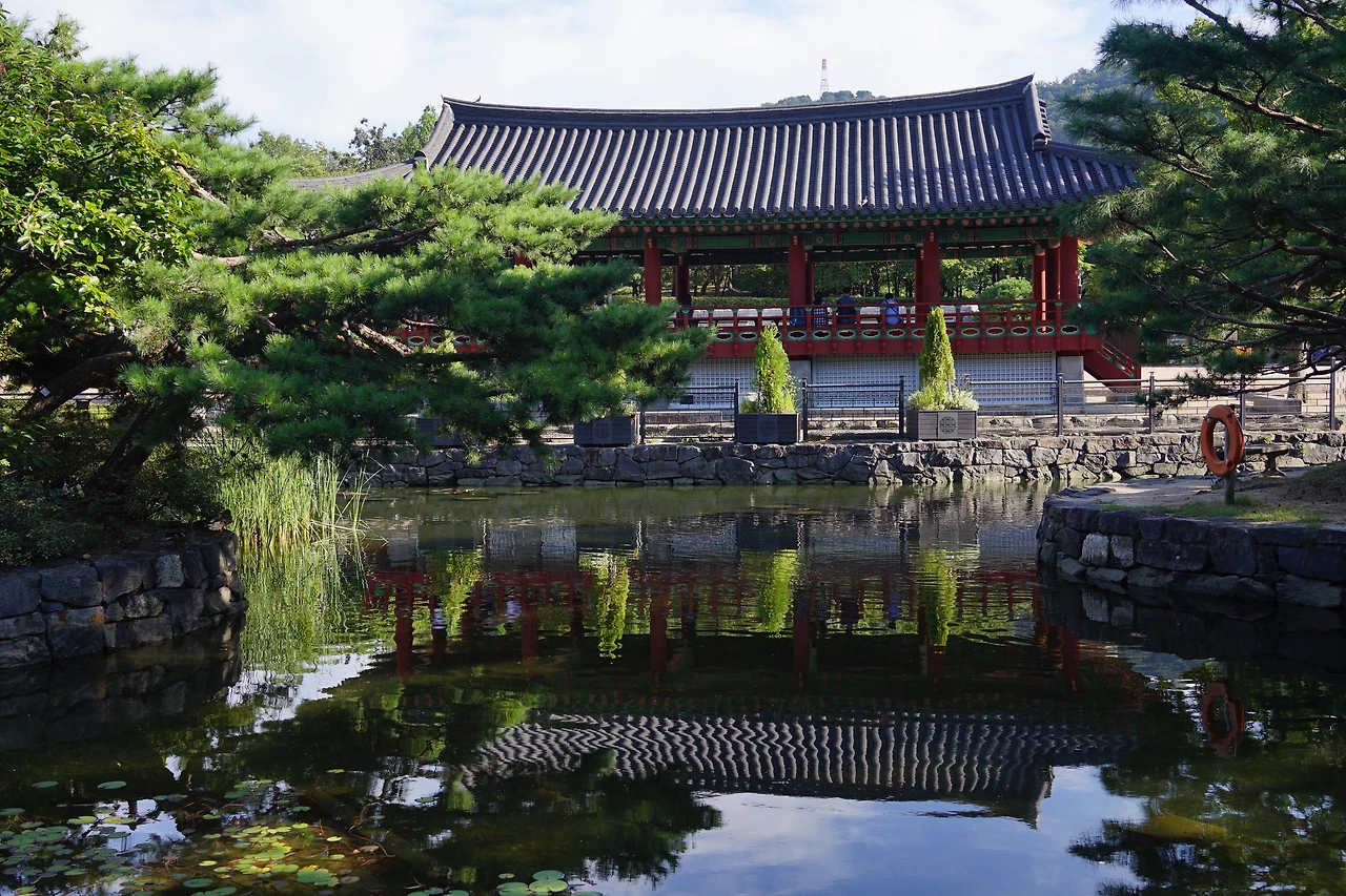 원두막을 지나 왼쪽으로 향하니, 천우각이 장엄하고 화사한 기품을 뽐내고 있었다. 장맛비에 젖은 터라 더욱 새초롬히 도드라졌다.