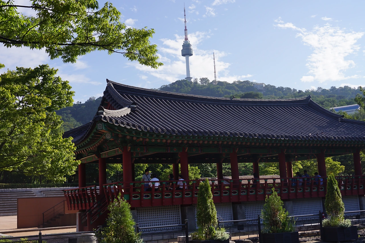 천우각 앞에는 청학지 연못이 다정한 연인처럼 다소곳이 자리 잡았다. 연못에 길게 드리워진 누각과 지붕 위로 우뚝 솟은 듯한 남산서울타워가 멋진 앙상블을 이뤘다. 마치 한 폭의 풍경화를 보는 듯했다.