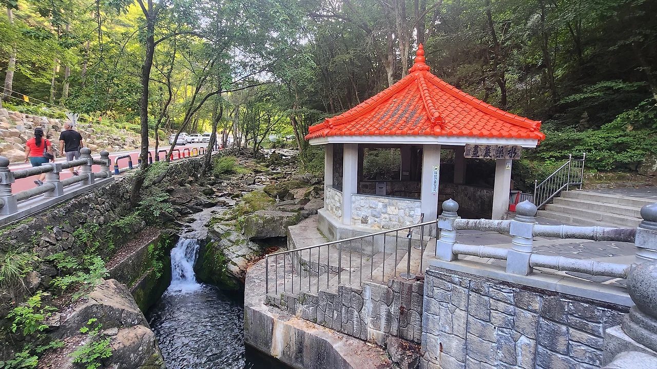 관광객이 시음 중인 화암 약수