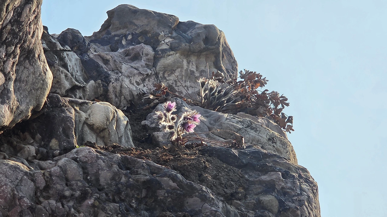 석회암 틈새 백발 성성한 꽃무리