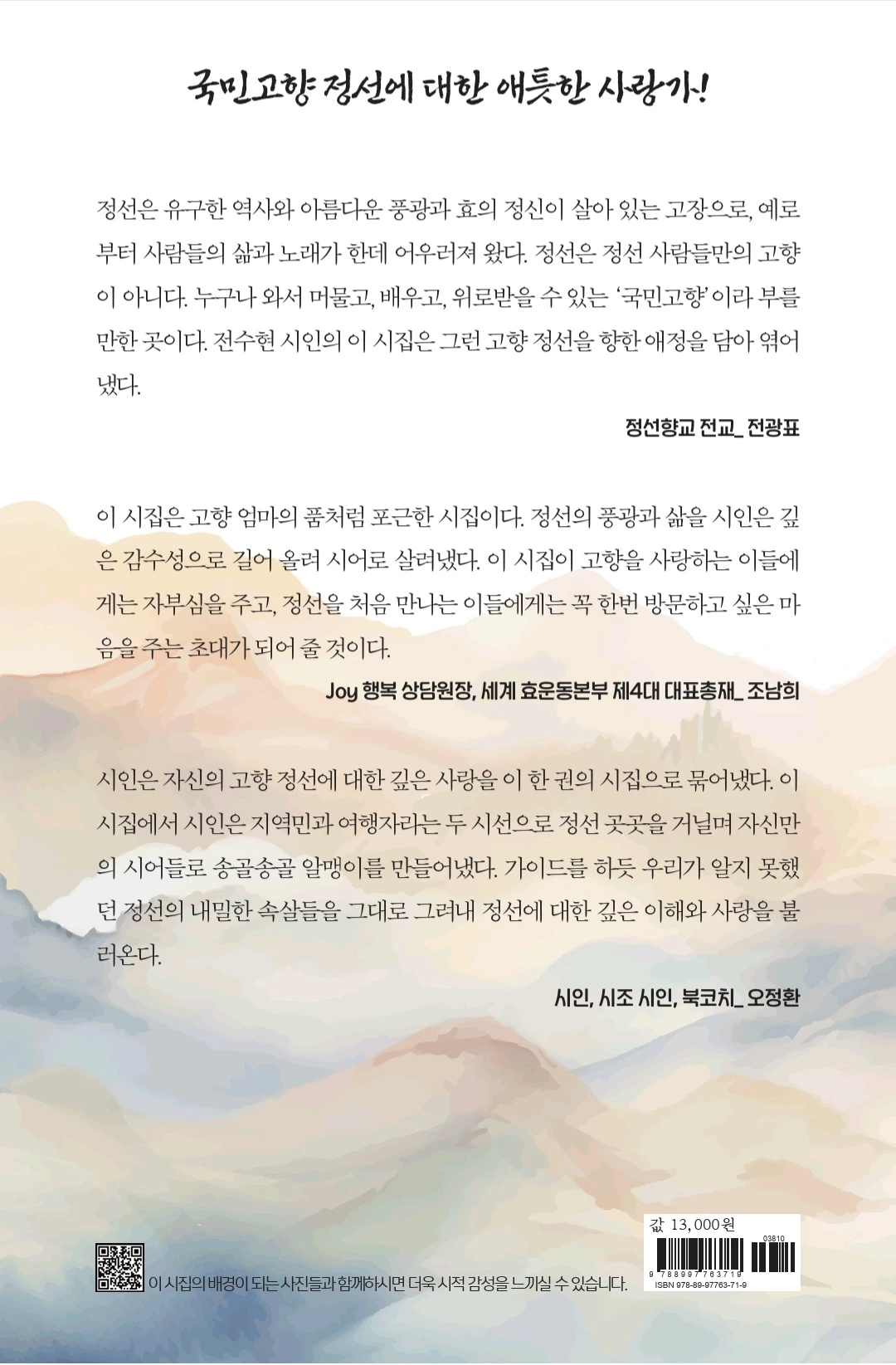 시인이 가이드하는 정선여행, 시와 어우러진 정선여행, 정선 시인이 쓴 여행자를 위한 시집, 전수현 시인의 세 번째 시집 『국민고향 정선, 그 품으로』가 2025년 12월 15일 출간되었다.