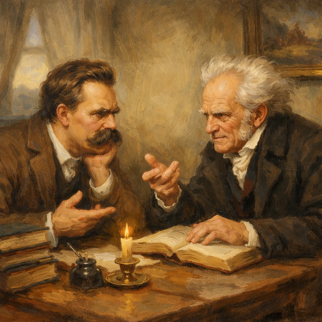 후자의 분은 니체로 전자의 분인 쇼펜하우어의 의지와 표상으로서의 세계라는 책을 읽고 충격을 받아 며칠 밤낮으로 그 책을 읽었다고 전해진다.