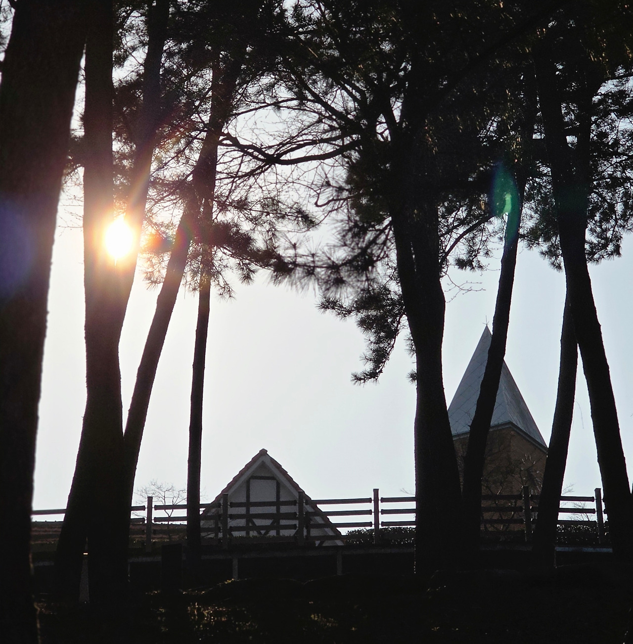 멀리 산 위에 걸터앉은 해는 쉬어 가는 듯 천천히 내려가고 있었습니다. 마치 제가 가는 길을 조금이라도 더 밝혀주기 위해 머물러 있는 것처럼 느껴졌습니다. 나무 사이로 비치는 햇살이 끝까지 따라오며 저를 비춰주었습니다