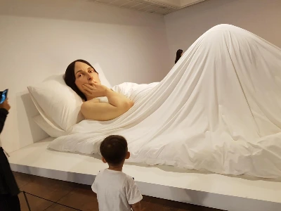 론 뮤익은 극사실주의 작가로 불리지만, 그의 작품은 '사실적인 사이즈'로 제작되지 않았다.