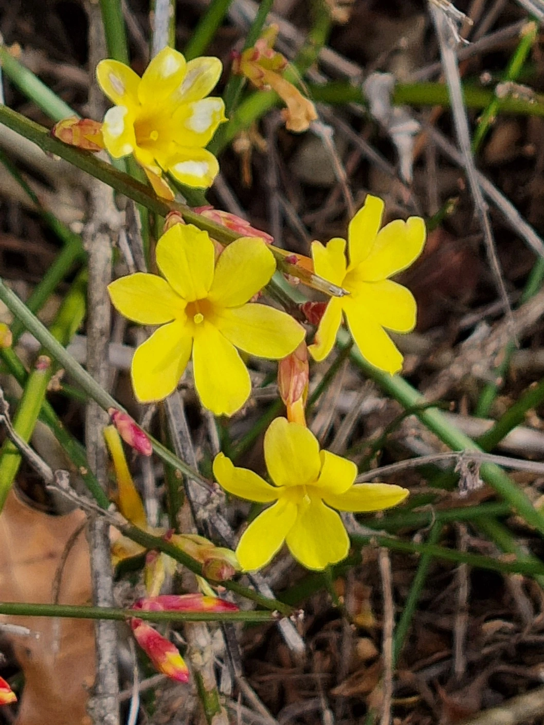끌끌 차며 걷고 있는데 벌써 영춘화가 날개를 펼쳤다