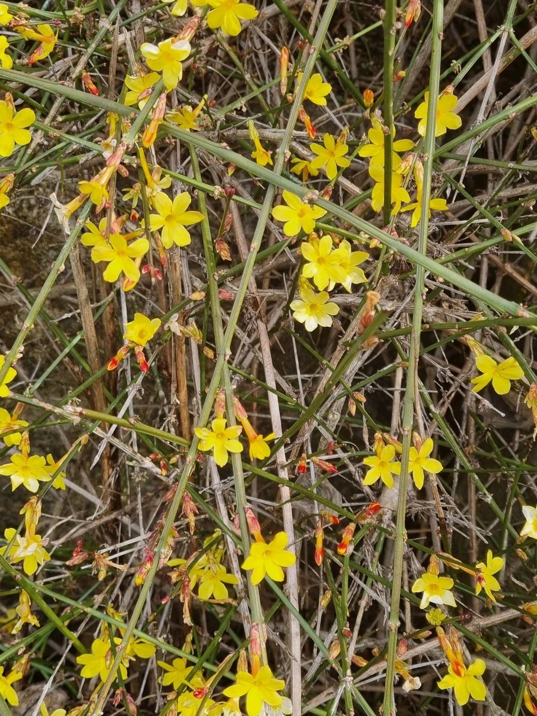 영춘화가 노란 날개를 씻어 담장 위에 말리고 있다