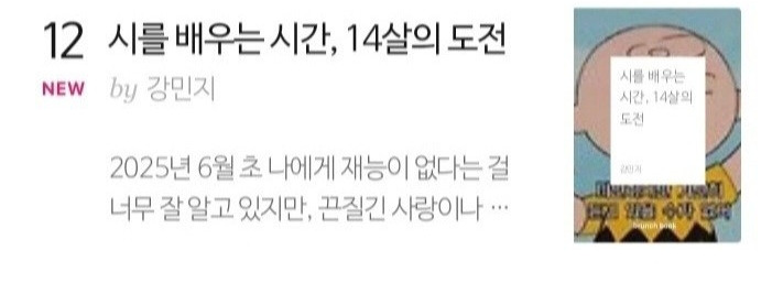 내 꿈은 단순히 이름을 알리는 작가가 되는 게 아니야. 나처럼 혼자 울던 사람에게 “괜찮아, 너도 할 수 있어”라고 이 문장을 쓰지 않아도 말해 줄 수 있는 작가가 되고 싶어. 누군가의 하루를 버티게 해 주는 문장을 쓰는 사람. 그게 내 꿈인데 내 하루가 너무 버겁기만 해서 가능할지는 모르겠다