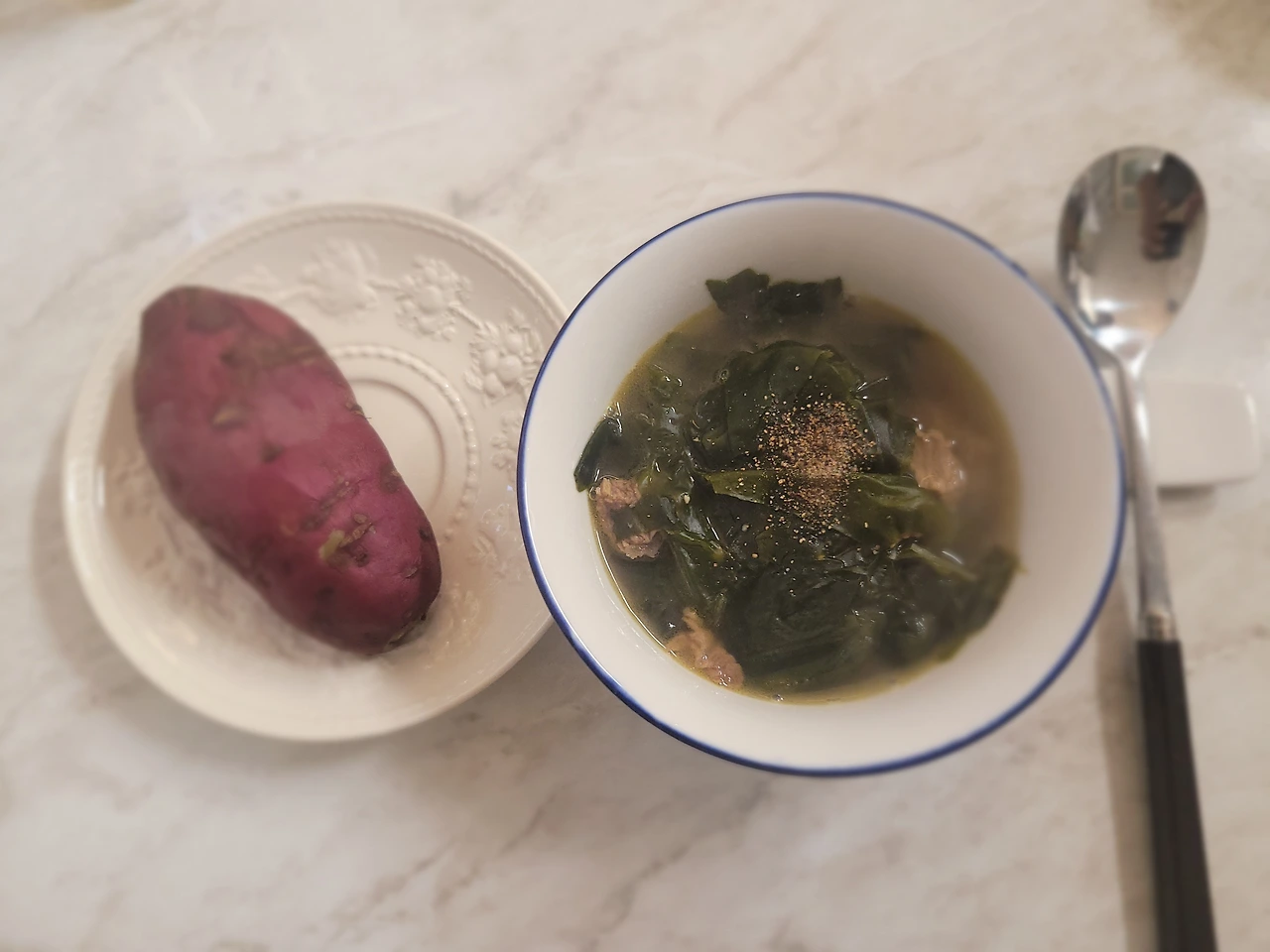 미역국의 고소한 향이 거실을 채울 즈음 나는 후추를 툭 툭 털어 넣고 가스불을 끄고 요리를 마무리하였다. 결국 난 생강, 파, 고추, 조미료를 넣지 못하고 뭔가 내 요리 철학과는 맞지 않는 부족한 요리로 마무리한 느낌이었다. 아내의 감수하에 진행된 요리의 결과물을 사발에 담아서 찐 고구마랑 아내의 생일상으로 내놓고 난 점수를 기다리는 수험생처럼 긴장을 하고 있었다.