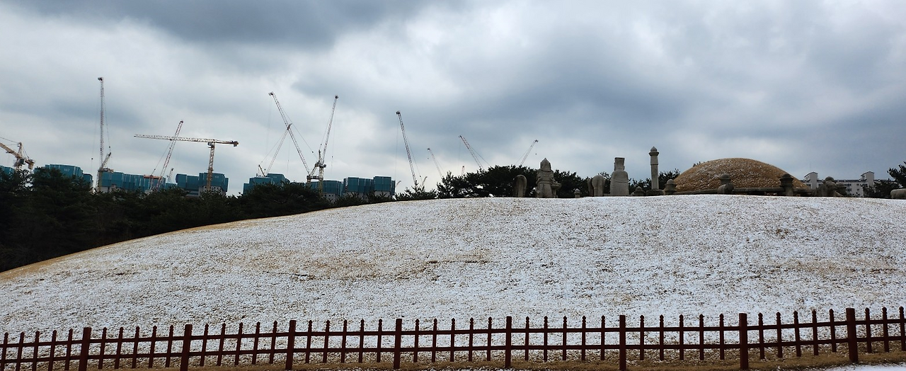 의릉의 석물들이, 아파트 건설현장을 바라보고 있다.